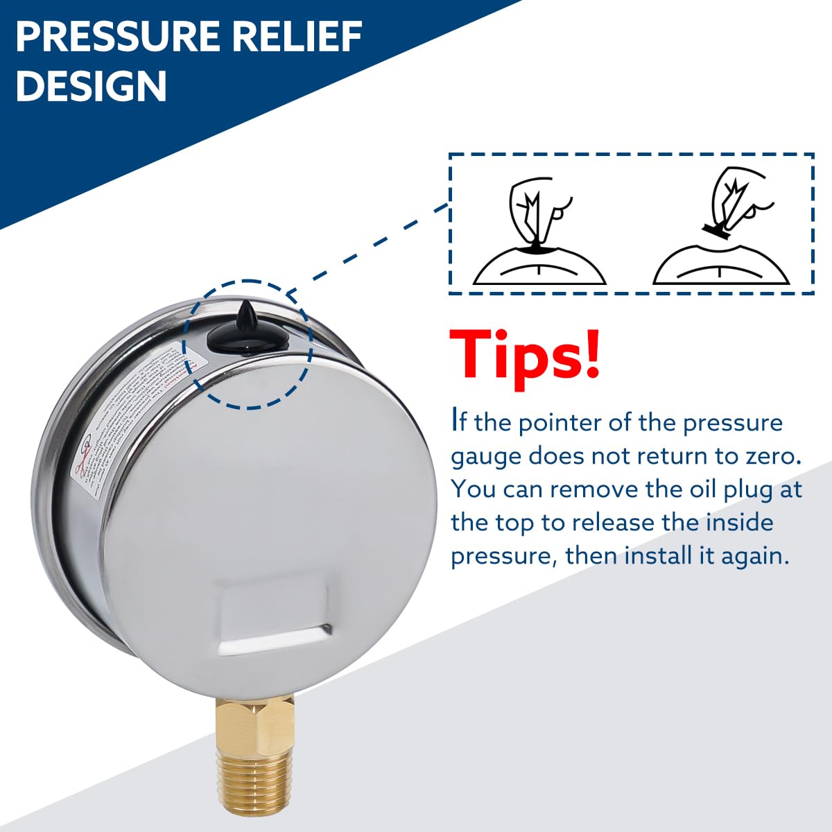 - The circular dial is enclosed in a 304 stainless steel case for corrosion resistance. Glycerin filled inhibits pointer flutter and prevents damage to the internal mechanics from vibration and pulsation.