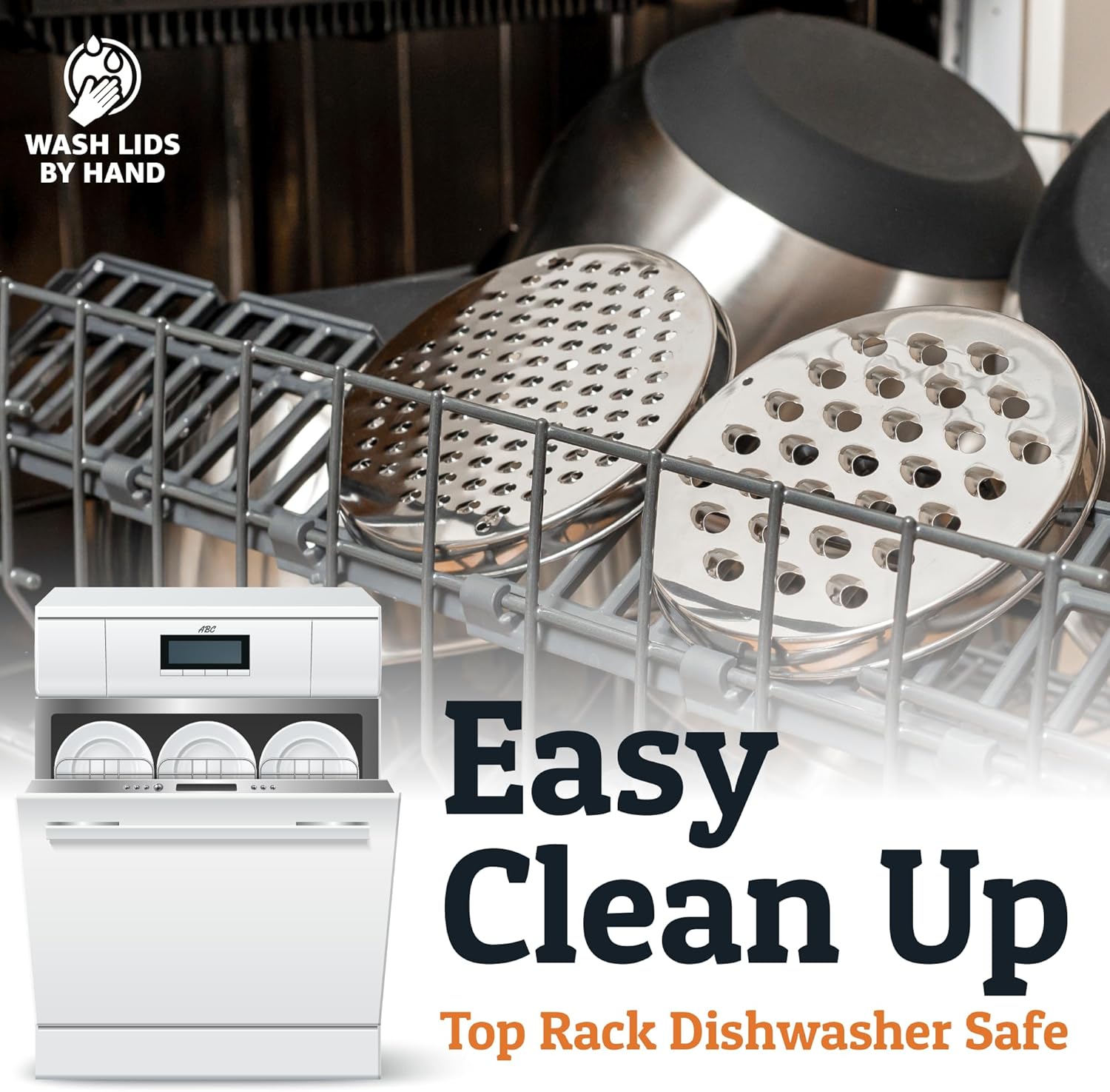 - Space-Saving Nesting Design with Matching Lids - This 6-piece set of large nesting bowls stacks neatly inside one another, keeping your kitchen cabinets organized and clutter-free. Each stainless steel bowl has its own fitted lid, so nothing goes missing. Ideal for small kitchens, apartment living, or anyone who values a tidy and functional cooking space.