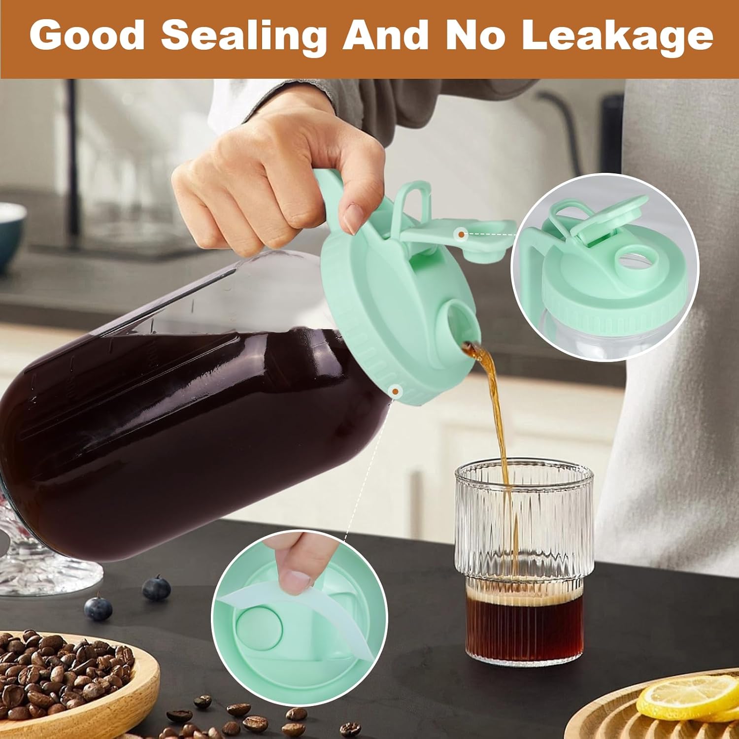- 【Pour Spout Handle Lid】: The ergonomically thicken handle ensures a firm grip and make the cold brew coffee pitcher easy to carry. The airtight spout and well sealing silicone ring will make you say goodbye to unwanted spills & food odors, prolonging fridge beverage freshness. The flip cap lid design make the cold brew pitcher become a easy pour dispenser for pouring and storage.