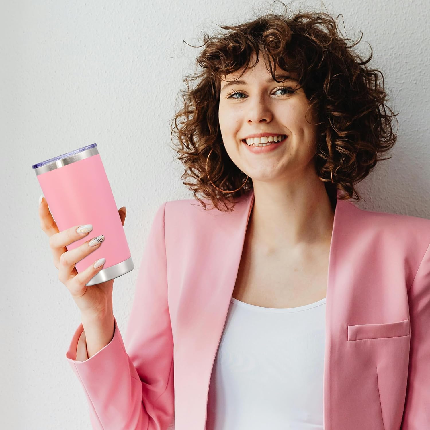20 oz Tumbler with lid Double Wall Vacuum Insulated Tumblers Stainless Steel Coffee Mug Travel Coffee Tumbler Powder Coated Tumbler Cup Keep Hot&Cold - (Pink 1 Pack)