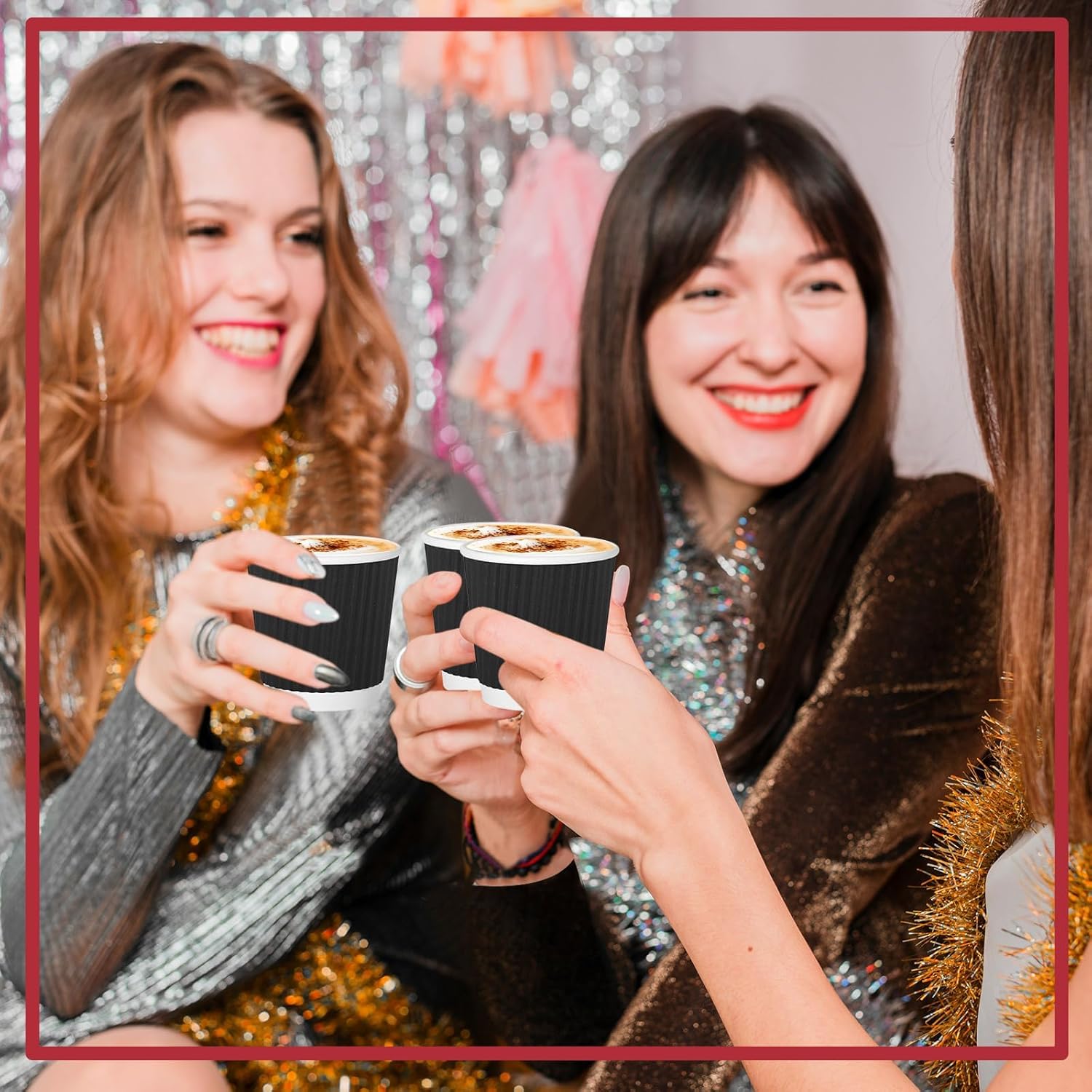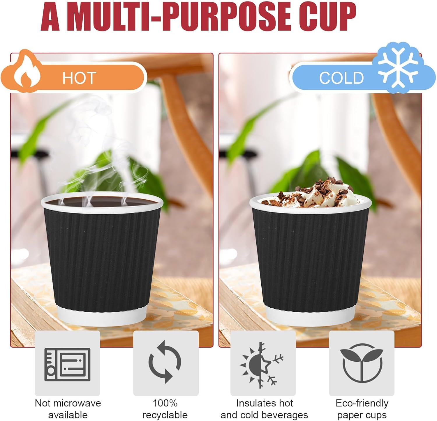 500 Pack Paper Espresso Coffee Cups, 4 oz Disposable Coffee Cups,Corrugated Insulated Ripple Wall, Paper Ripple Cup for Coffee, Hot Chocolate and Hot Tea Drinks -Black