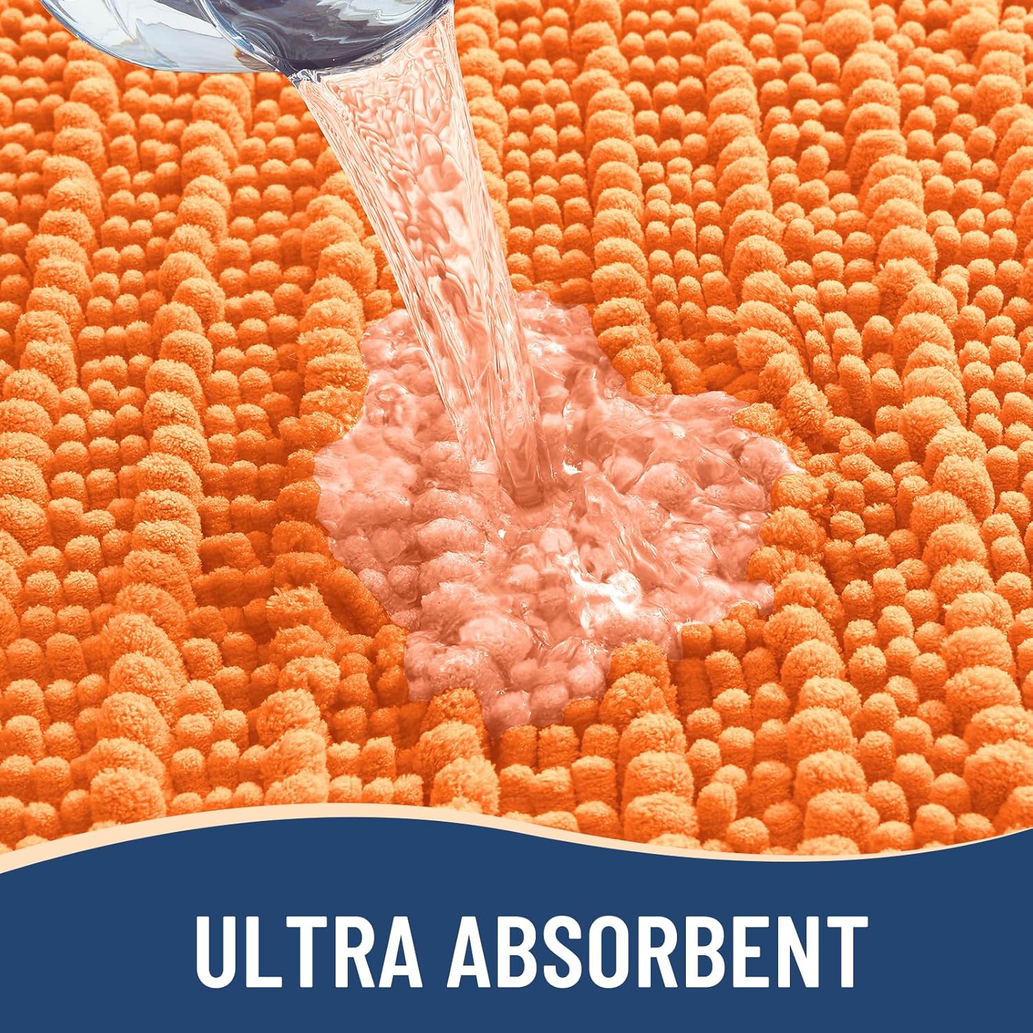Arotive Luxury Chenille Bathroom Rug Mat, Extra Soft Thick Absorbent Shaggy Bath Rugs, Non-Slip Machine Wash Dry, Plush Bath Mats for Bathroom, Shower and Tub, 47x24, Orange