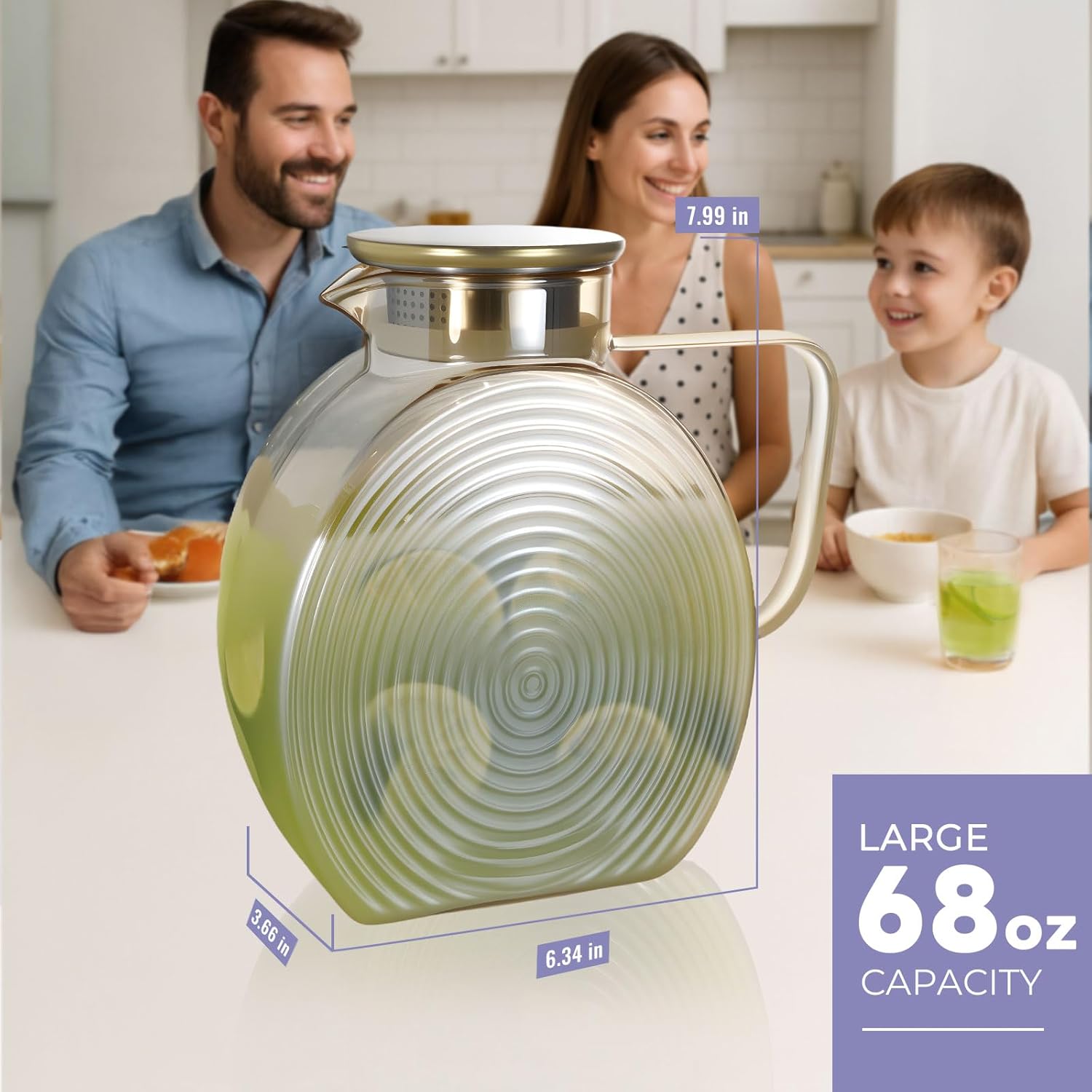 - Important Note: Please remember to peel off the two layers of protective film from the golden lid before using your glass pitchers to ensure a pristine and enjoyable experience.