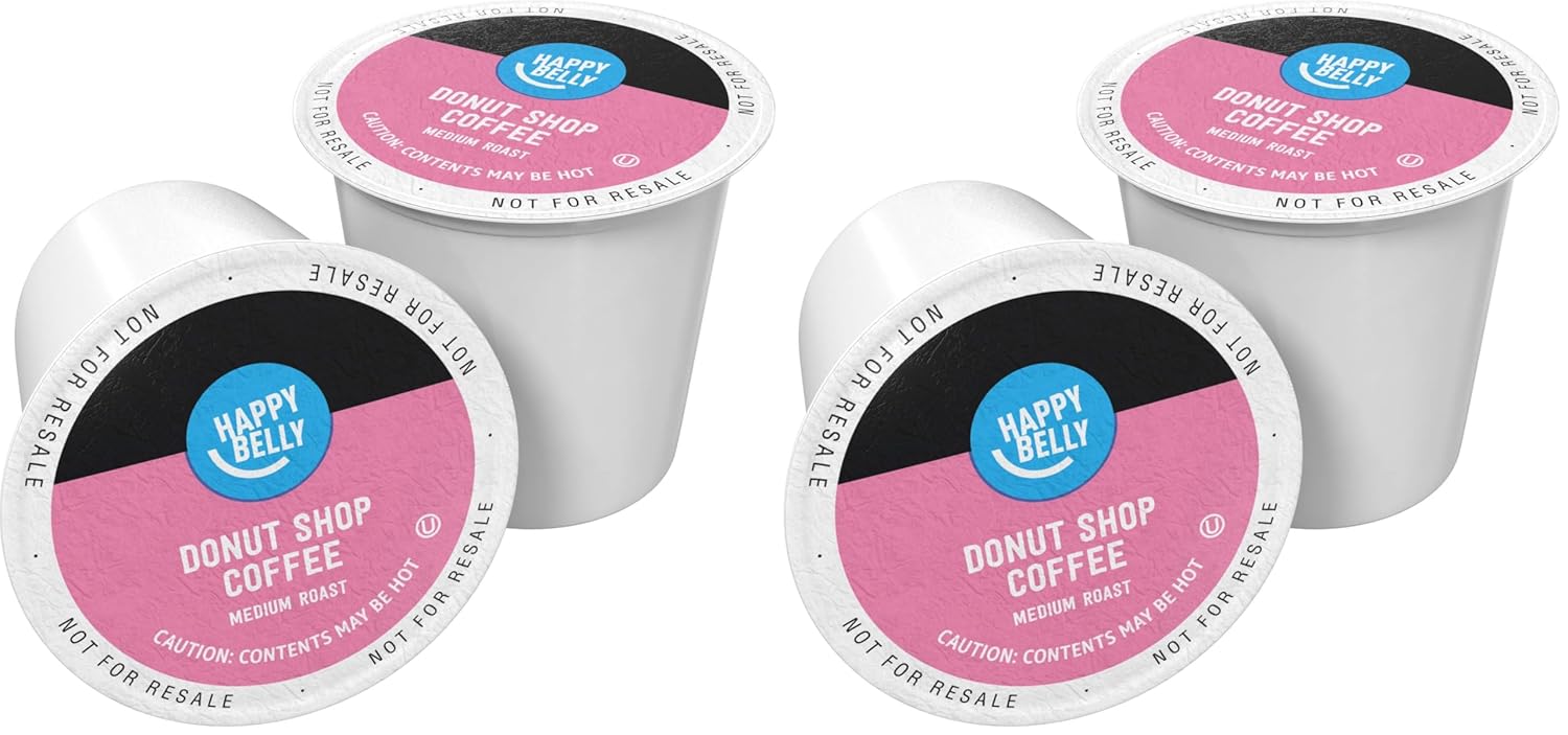 Amazon Brand - Happy Belly Medium Roast Coffee Pods, Donut Style, Compatible with Keurig 2.0 K-Cup Brewers, 100 Count (Pack of 2)