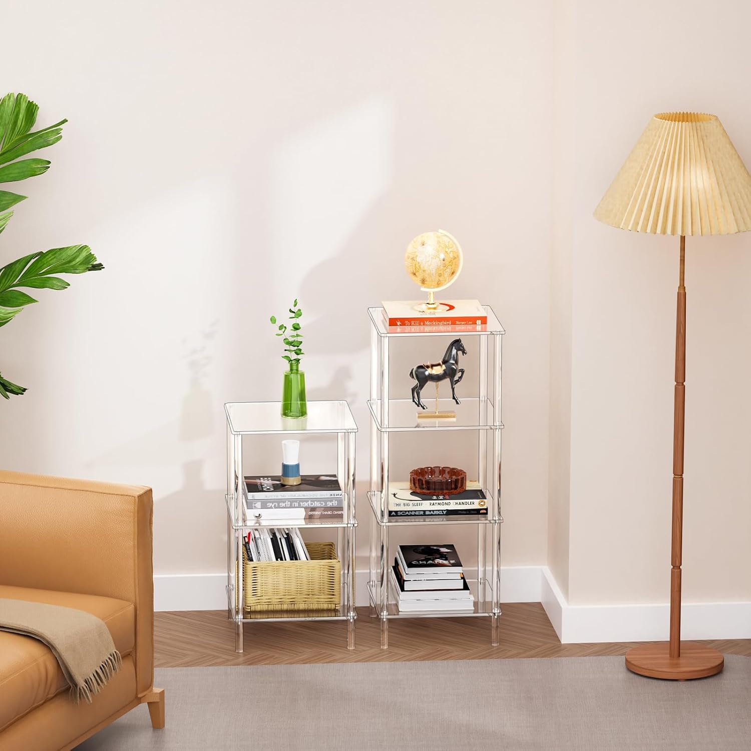 Acrylic Side Table Clear 3-Tier End Table for Living Room, Office, Hallway, Bedroom Small Bedside Table (8mm 13.1'' Wide)