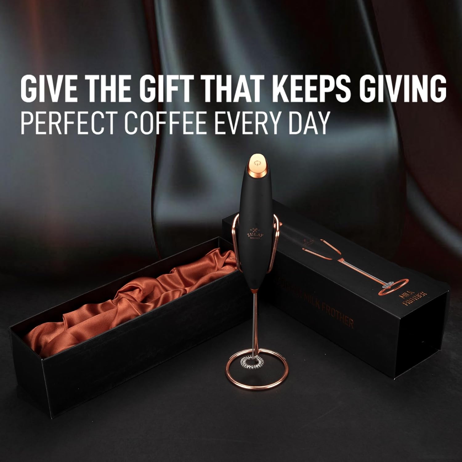 Zulay Kitchen Executive Series Luxury Gift Milk Frother with 4 Duracell Batteries – Handheld Electric Foam Maker for Coffee, Lattes & Hot Chocolate – Deluxe Finish, Ultimate Gift for Coffee Lovers