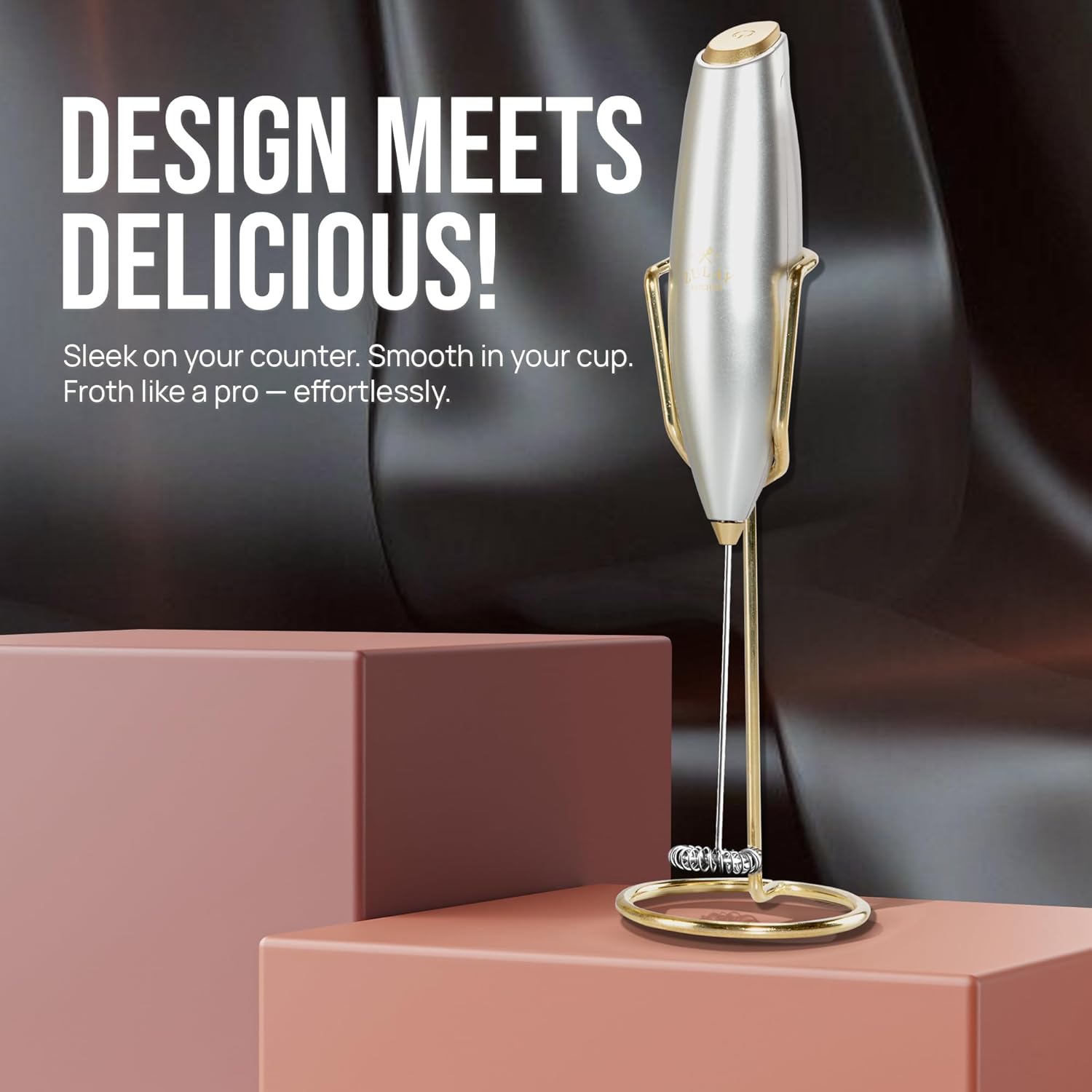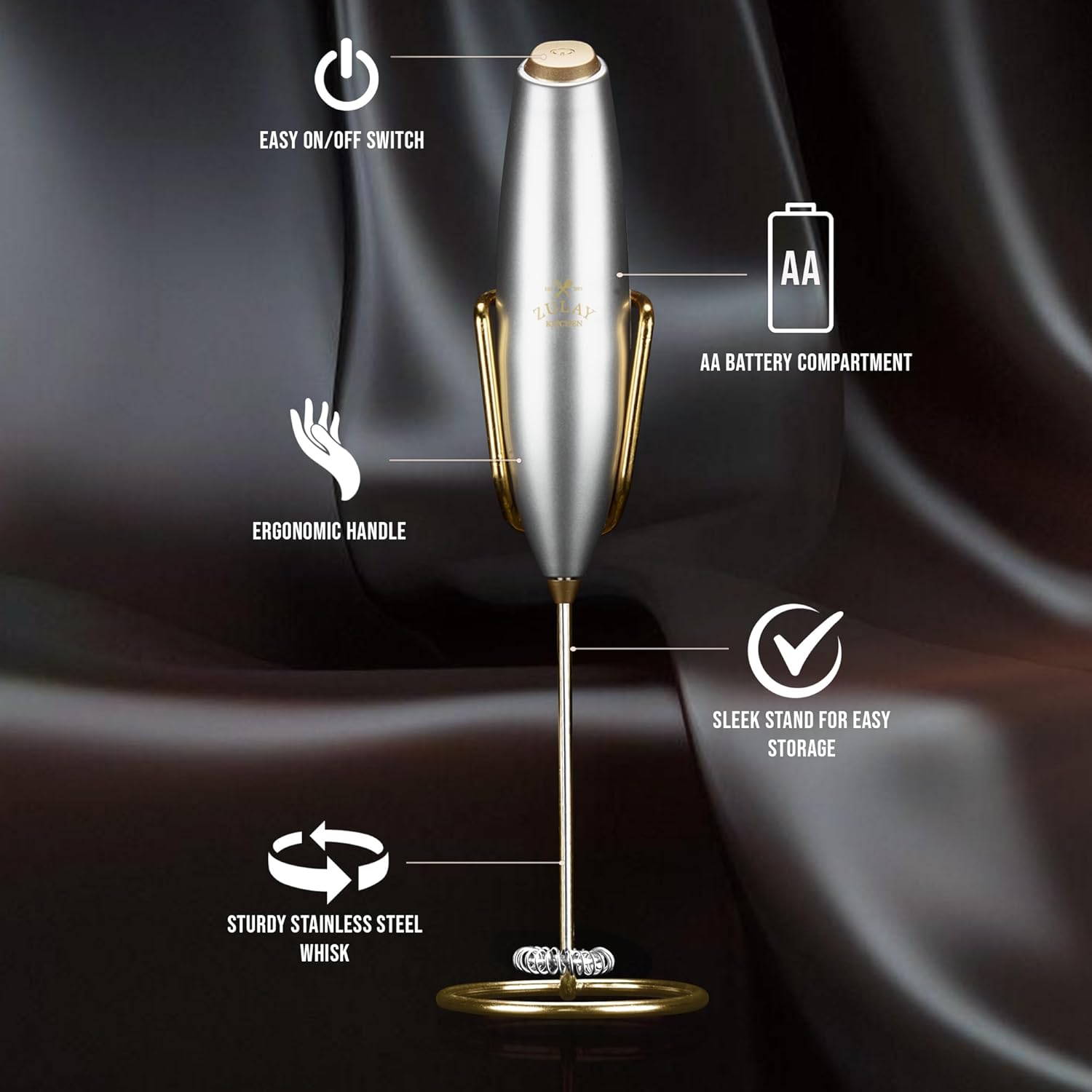Zulay Kitchen Executive Series Luxury Gift Milk Frother with 4 Duracell Batteries – Handheld Electric Foam Maker for Coffee, Lattes & Hot Chocolate – Deluxe Finish, Ultimate Gift for Coffee Lovers