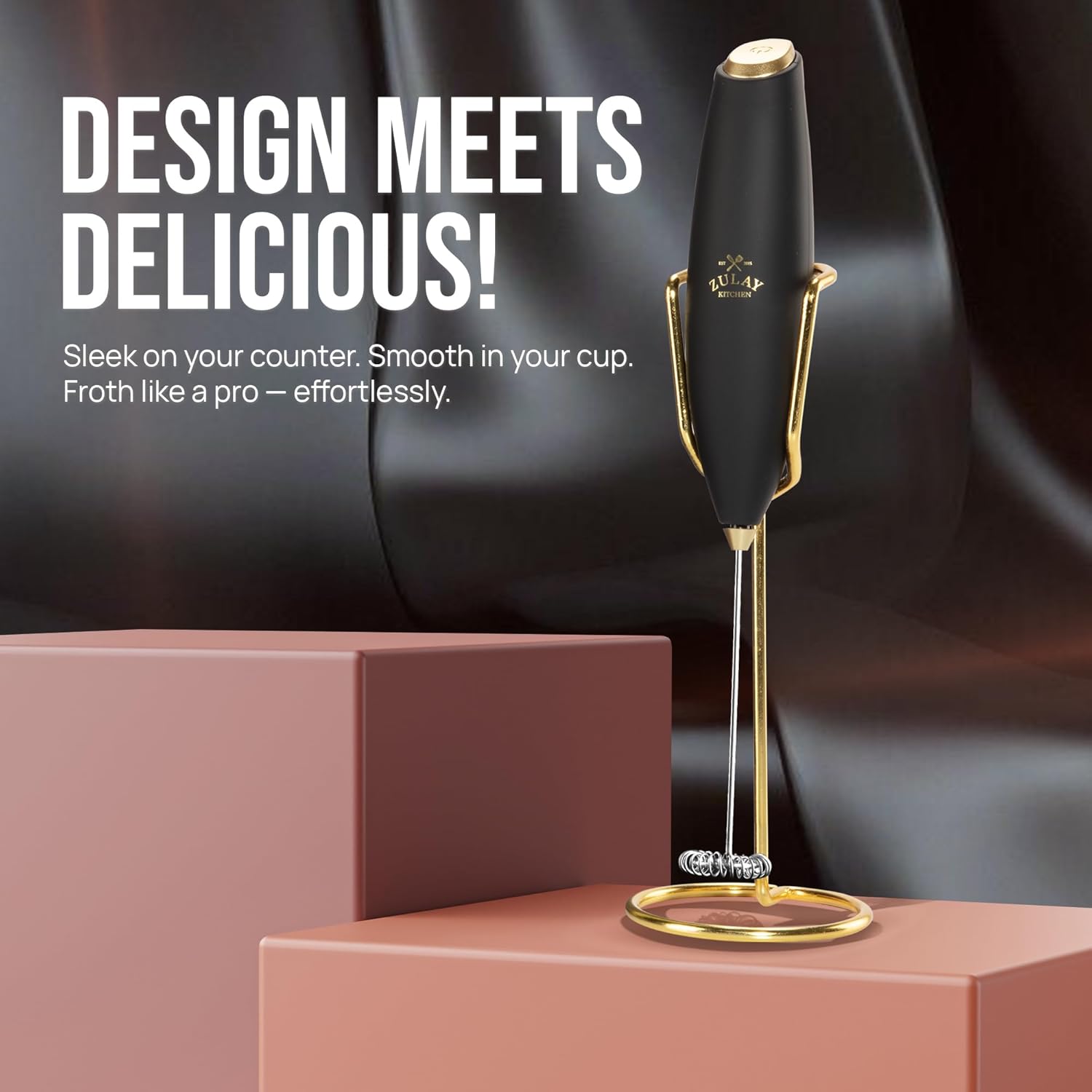 Zulay Kitchen Executive Series Luxury Gift Milk Frother with 4 Duracell Batteries – Handheld Electric Foam Maker for Coffee, Lattes & Hot Chocolate – Deluxe Finish, Ultimate Gift for Coffee Lovers
