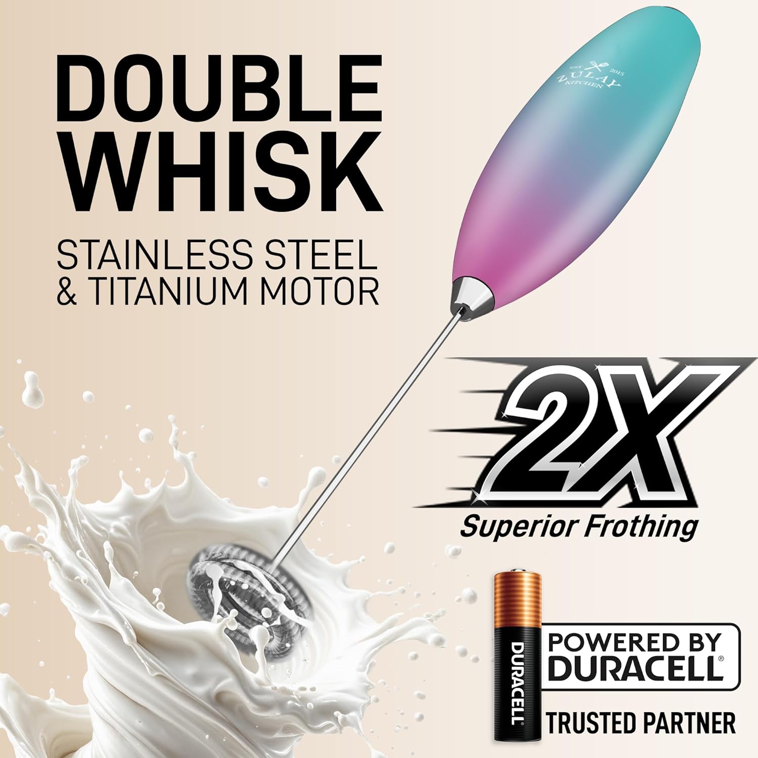 Zulay Kitchen Whisk Milk Frother with 4 Duracell Batteries - Powerful Handheld Foam Maker for Coffee, Lattes, Matcha, Hot Chocolate & Cappuccinos - Whip Creamy Froth in Seconds