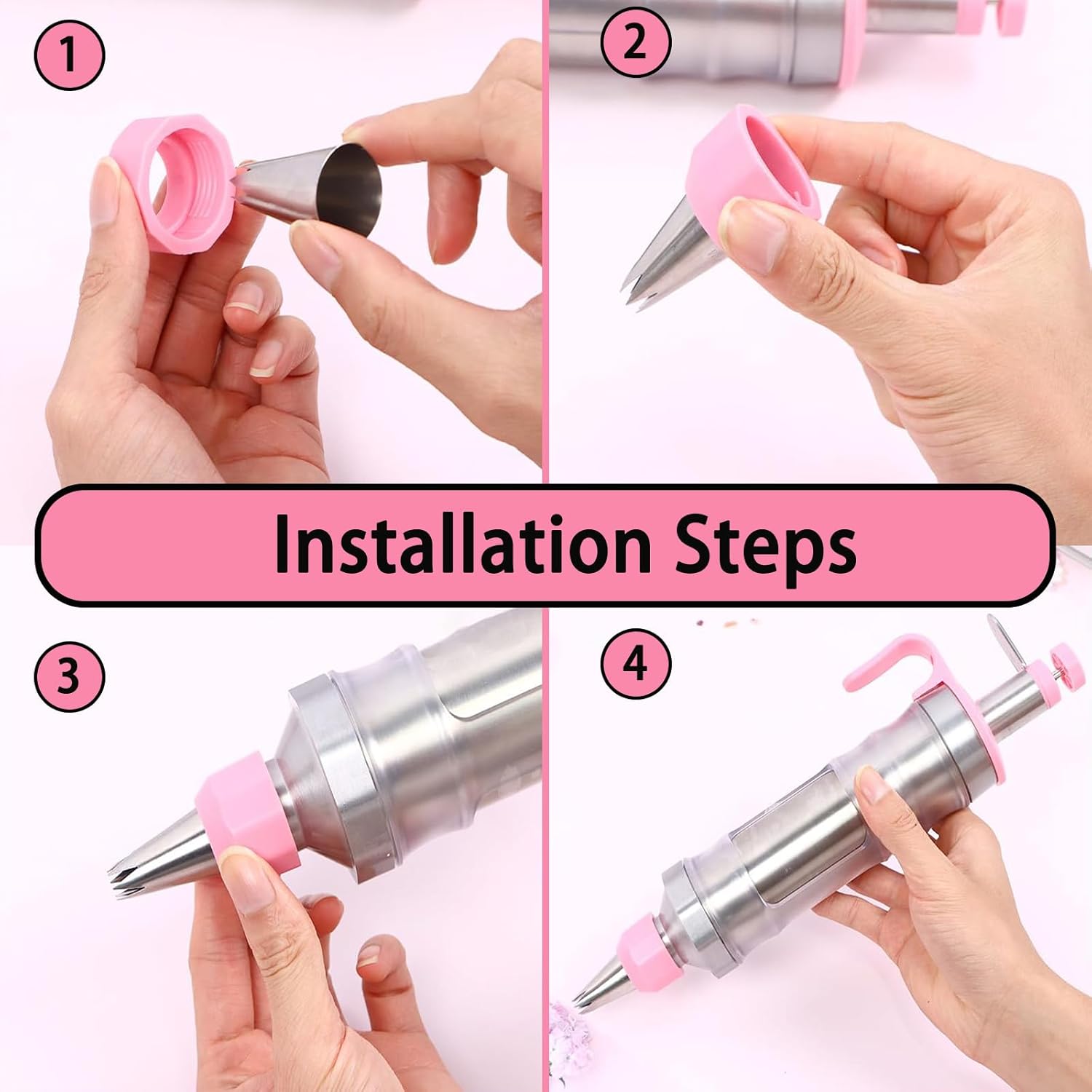 - Quality Frosting Piping Kit: cake decorating gun and piping tips from quality 304 stainless steel, is BPA-free; The food grade material allows you to use it with complete peace of mind