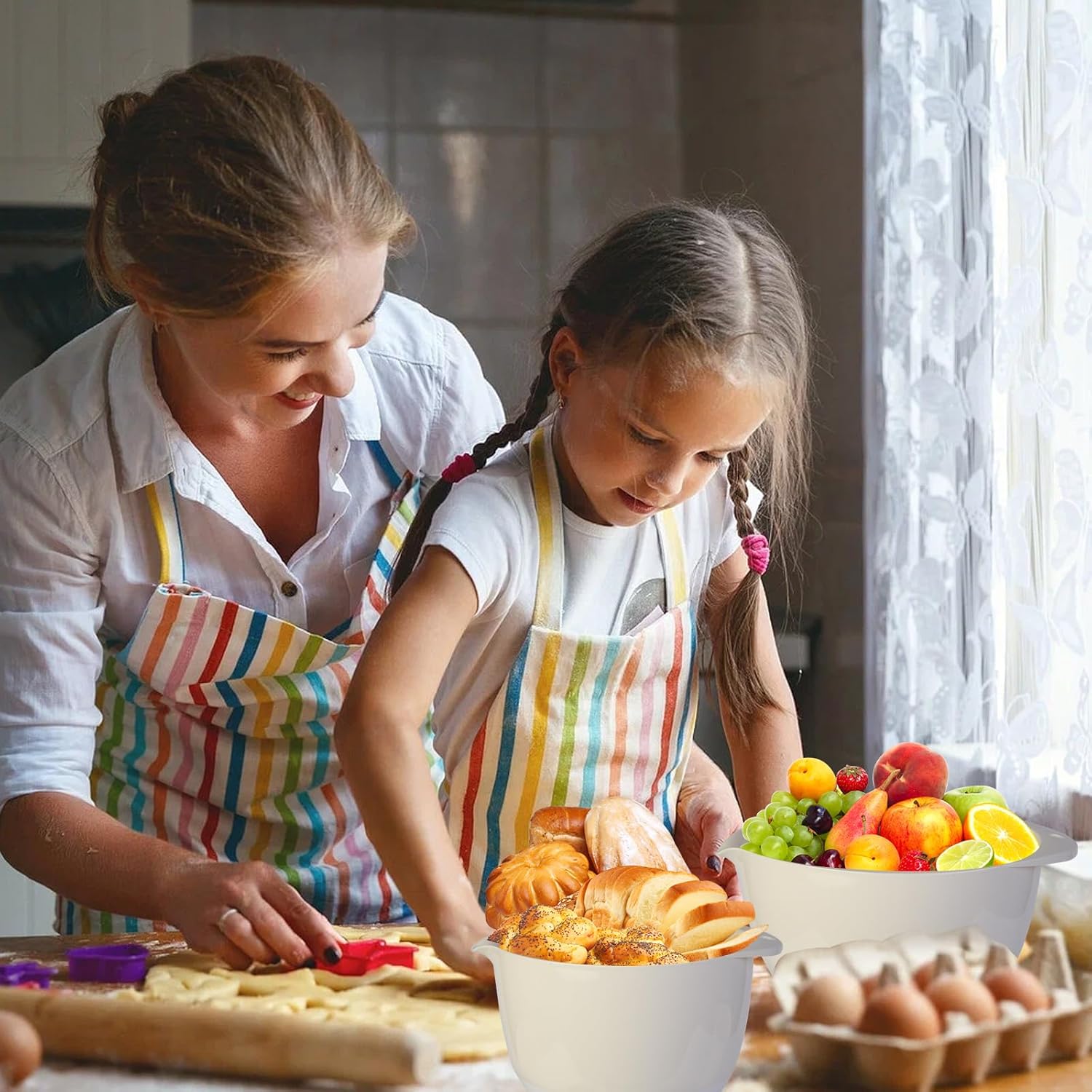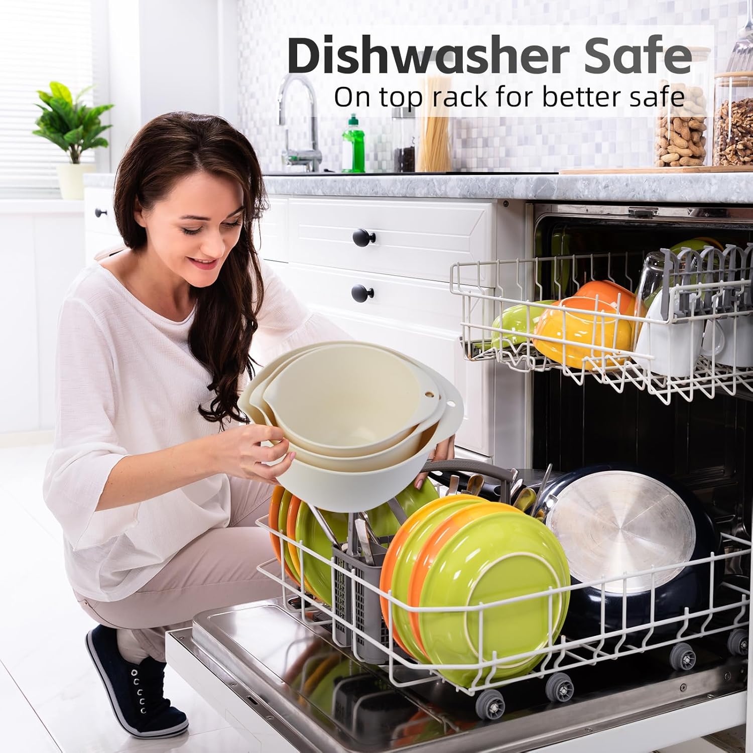 - DISHWASHER SAFE: These mixing bowl set with lid and spout are dishwasher safe. The plastic bowl is very durable,unbreakable.The bowl's design is elegant and classic, matching any kitchen decor.A must-have for a new house!