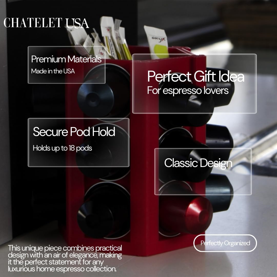 Espresso Coffee Pod Holder & Organizer | Espresso Capsule Kitchen Display Carousel | Holds 18 Pods | Made in USA (Red)