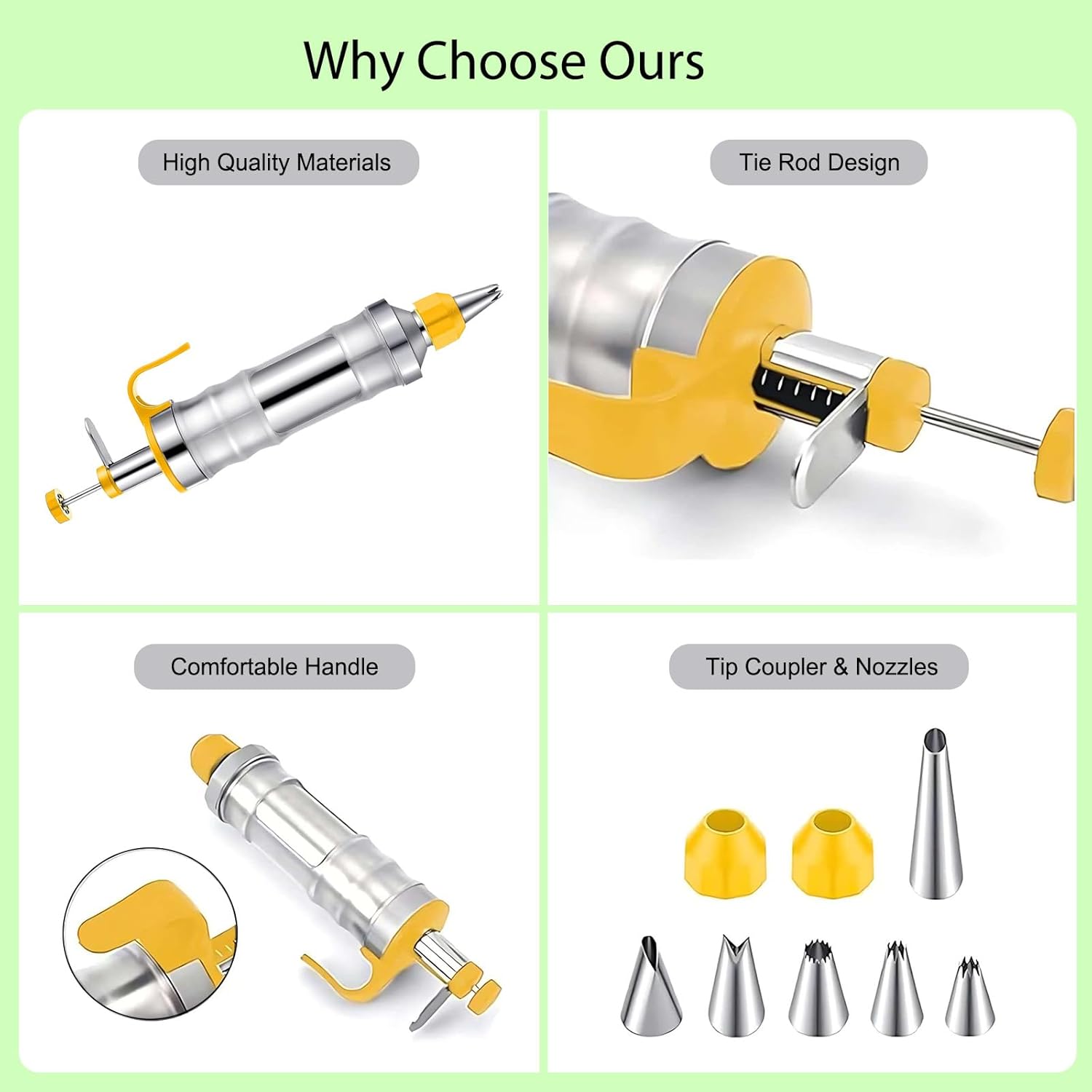 - 【19-Piece Complete Decorating Set】 This cake decorating kit includes 1 frosting gun, 6 stainless steel piping tips, 2 couplers, 8 BPA-free silicone cups, and 2 cleaning brushes. Perfect for cupcake decorating, cake frosting, and cookie designs, it’s a must-have for baking supplies enthusiasts.