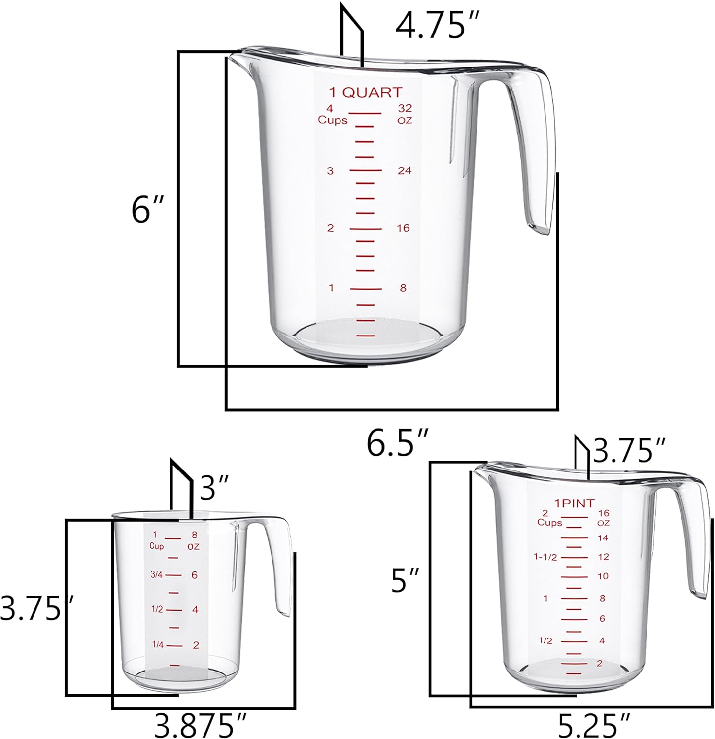 DaYammi Measuring Cups 3-Piece, Unbreakable Food-Grade Plastic Measuring Cup for Dishwasher, 1/2/4-Cup Nesting Liquid Measuring Cups for Prepping, Baking, Cooking, Readable Markings, Clear