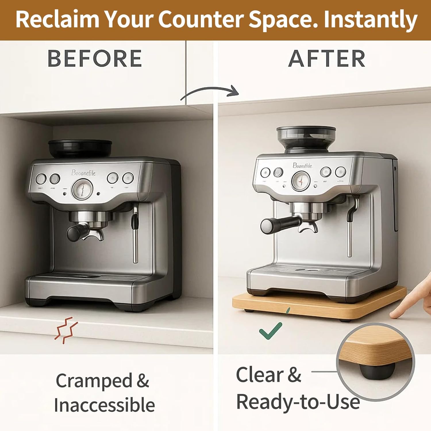 - ELEGANT & FUNCTIONAL UPGRADE | Elevate your kitchen's aesthetic with the warm, natural look of this premium bamboo coffee slider. A beautiful and practical appliance caddy that streamlines your daily routine. Click 'Add to Cart' now for a smarter, more elegant kitchen workflow.