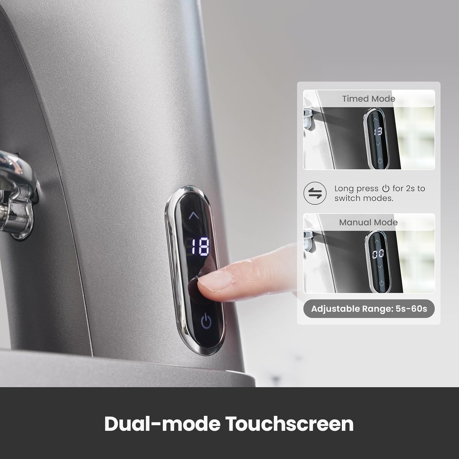 - Smart Timer & Dual Usage Modes: This electric coffee grinder features an intuitive touchscreen with adjustable grind time (5-60 seconds). Whether you're making a quick espresso or brewing multiple cups, simply press a button for 2 seconds to switch between Timed Mode and Manual Mode. It supports the 58mm portafilter for automatic touch-to-grind or a collection cup, offering ultimate flexibility and making it the perfect choice for your morning coffee ritual, from a single espresso shot to a full pot of drip coffee