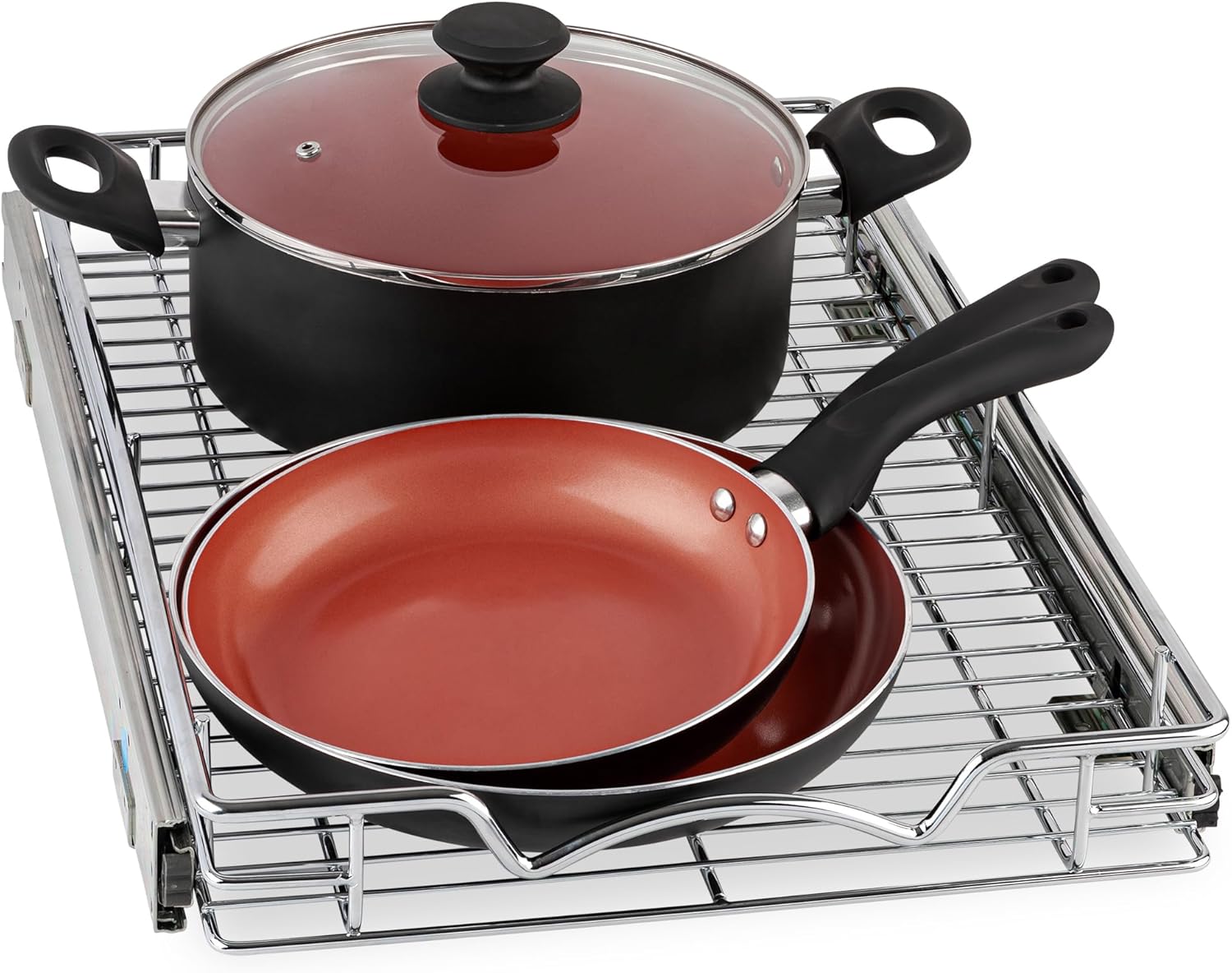 HOLDN’ STORAGE Pull Out Cabinet Organizer, Heavy Duty-w/Lifetime Limited Warranty -11”W x 18”D-Requires At Least 12-1/4” Cabinet Opening, Steel Metal Cabinet Drawers Slide Out, Chrome Finish