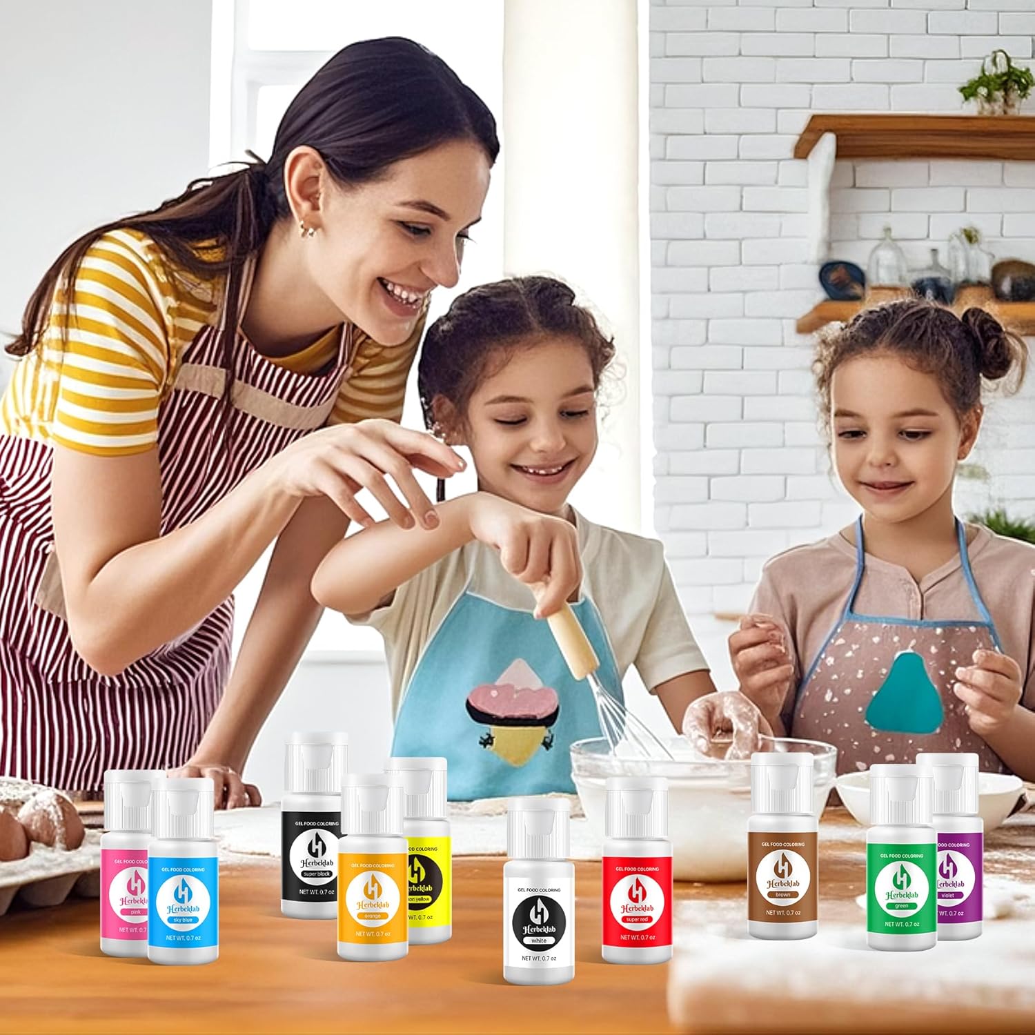 - Vibrant Gel Food Coloring: Unleash your creativity with gel food coloring including super red, pink, sky blue, violet, orange, green, lemon yellow, super black, white, brown. Each of the food coloring gel bottle contains 0.7 oz. of color. Whether you're a professional baker or a home enthusiast, you'll have vibrant hues to bring your culinary creations to life