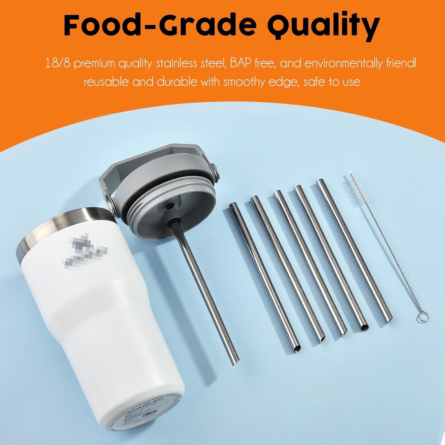 - 【Food Grade Stainless Steel Material】Made of 18/8 primue stainless steel material, our metal straws compatible with stanley tumbler are safe and durable, BPA-free, lead-free, non-toxic, odorless, and environmentally friendly. Say no to plastic!