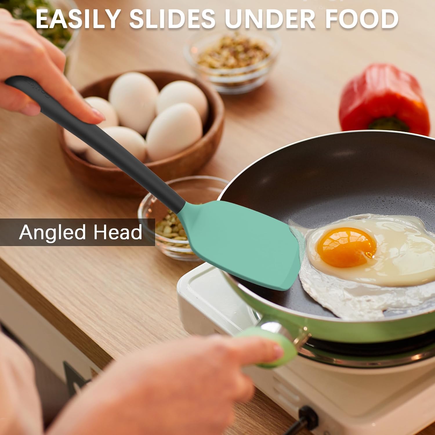 Coukre Silicone Spatula Set of 3, High Heat Resistant, BPA-Free, Kitchen Utensils, Fish Spatula, Solid & Slotted Turner for Non-Stick Pans, Flipping Eggs, Pancakes, Fish, Burgers (3, AquaGreen)