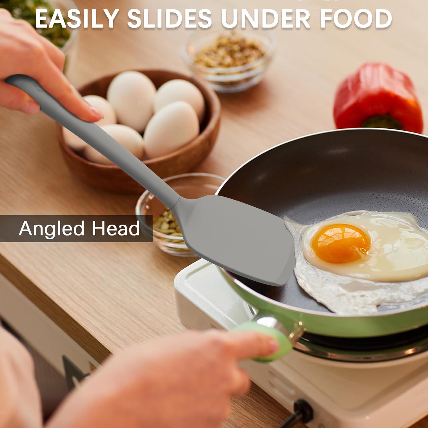 Coukre Silicone Spatula Set of 3, High Heat Resistant, BPA-Free, Kitchen Utensils, Fish Spatula, Solid & Slotted Turner for Non-Stick Pans, Flipping Eggs, Pancakes, Fish, Burgers (3, PureGray)