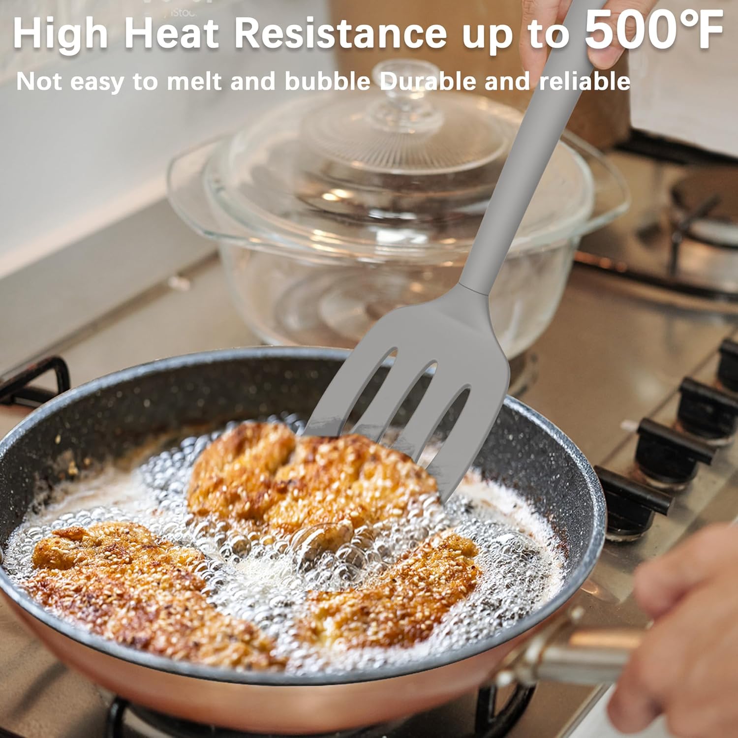 - [Comfortable Silicone Handle]: These silicone kitchen utensils are designed with a sturdy plastic core and thickened silicone handle for a firm, heat-insulated grip, the slim head ensures precise control