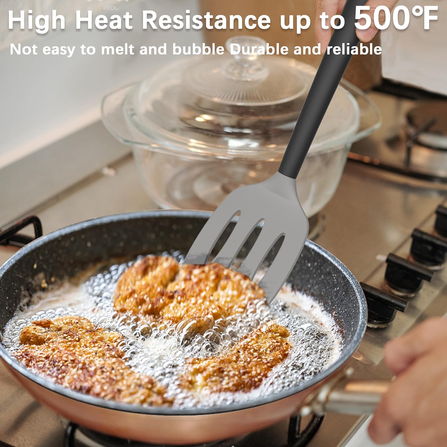- [Comfortable Silicone Handle]: These silicone kitchen utensils are designed with a sturdy plastic core and thickened silicone handle for a firm, heat-insulated grip, the slim head ensures precise control