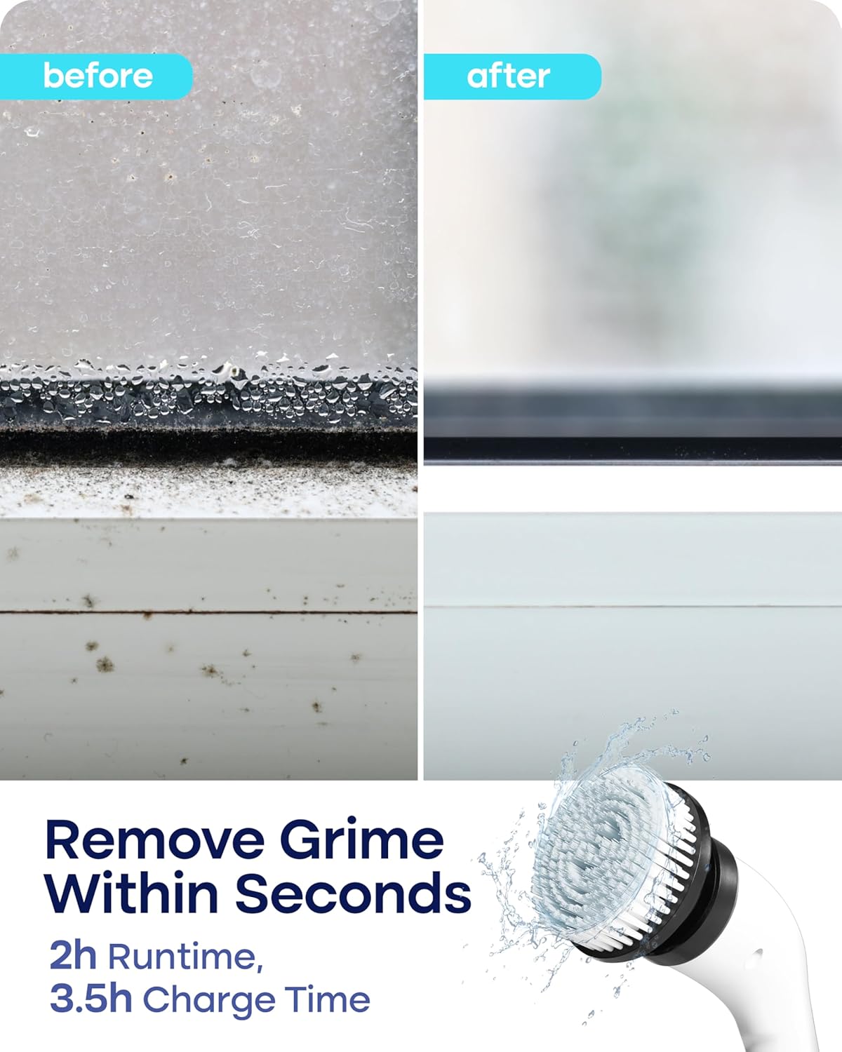 - ✔ Long Battery Life, USB-C Fast Charging - Up to 100 minutes of cleaning power with a 2500mAh battery. Fully recharges in just 2.5 hours via the included USB-C cable. Cordless and convenient shower cleaner brush with a wall mount for easy storage
