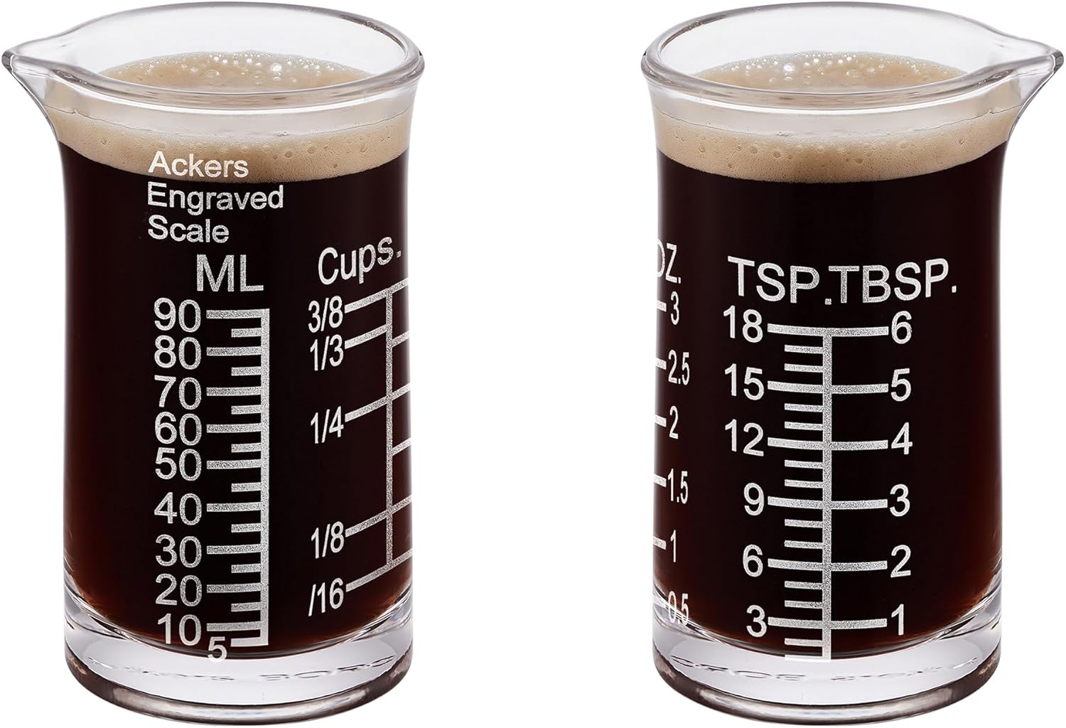 - 【Etched Graduations】: The measuring cup features etched graduations in Five units (ML,Cup,OZ,Tablespoons,Teaspoons)all the way up to 3oz. This ensures you can measure all types of liquids and follow any recipe with ease. It is 100% dishwasher safe, allowing you to trust it for hassle-free cleaning