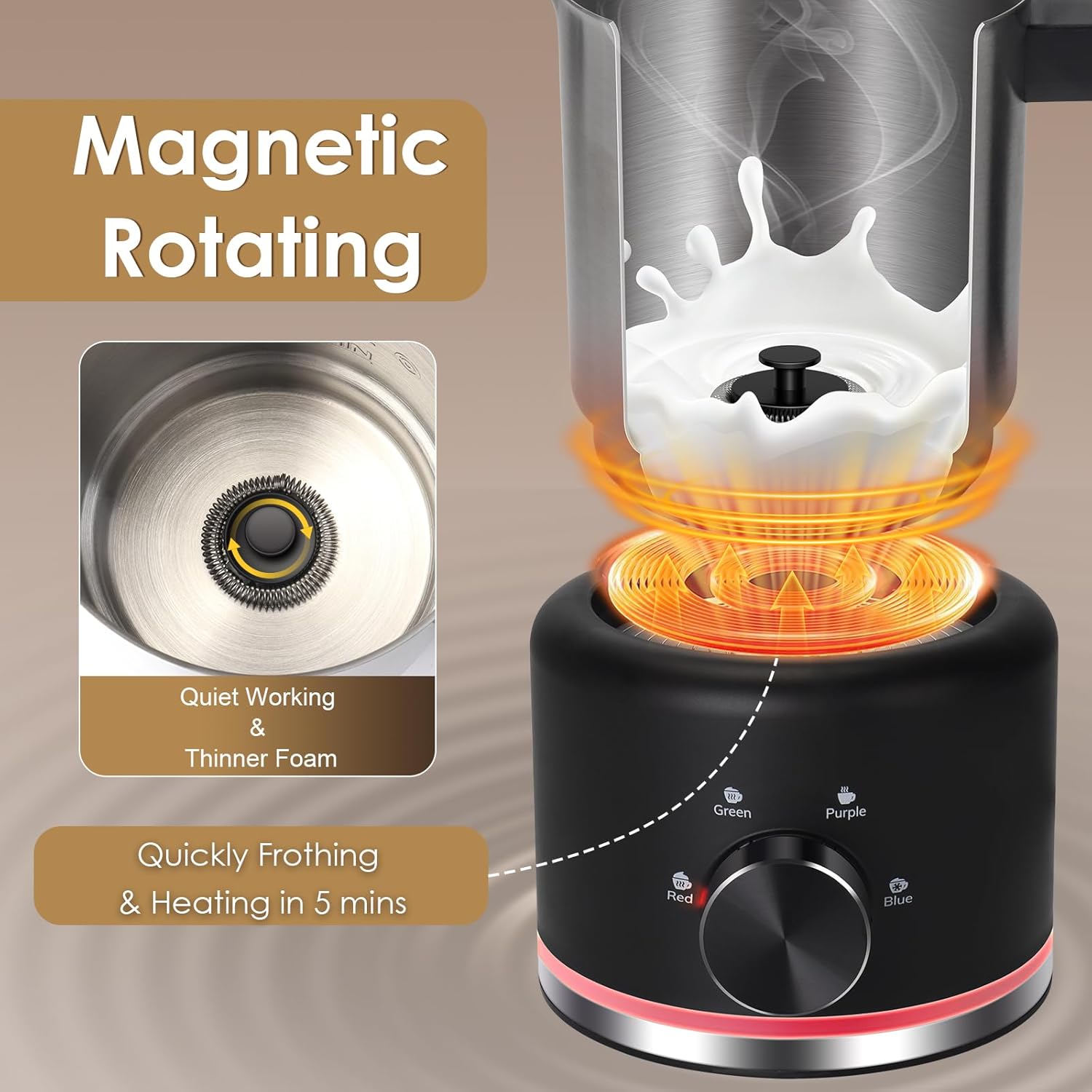 - ๐๐ฎ๐ฅ๐ญ๐ข๐๐ฎ๐ง๐๐ญ๐ข๐จ๐ง๐๐ฅ-The milk steamer and frother for latte provides 4 modes including RED LIGHT for hot and thick foam about 4-5 mins, GREEN LIGHT for hot and thin foam about 4-5 mins, PURPLE LIGHT for hot milk about 6-7 mins, BLUE LIGHT for cold foam about 3 mins. The electric milk frother hot and cold foam suits for your various needs for heating or frothing milk for coffee, cappuccino and latte. It is recommended to use whole milk for milk frothing (fat content >3.0%), the milk foam will be denser and last longer.
