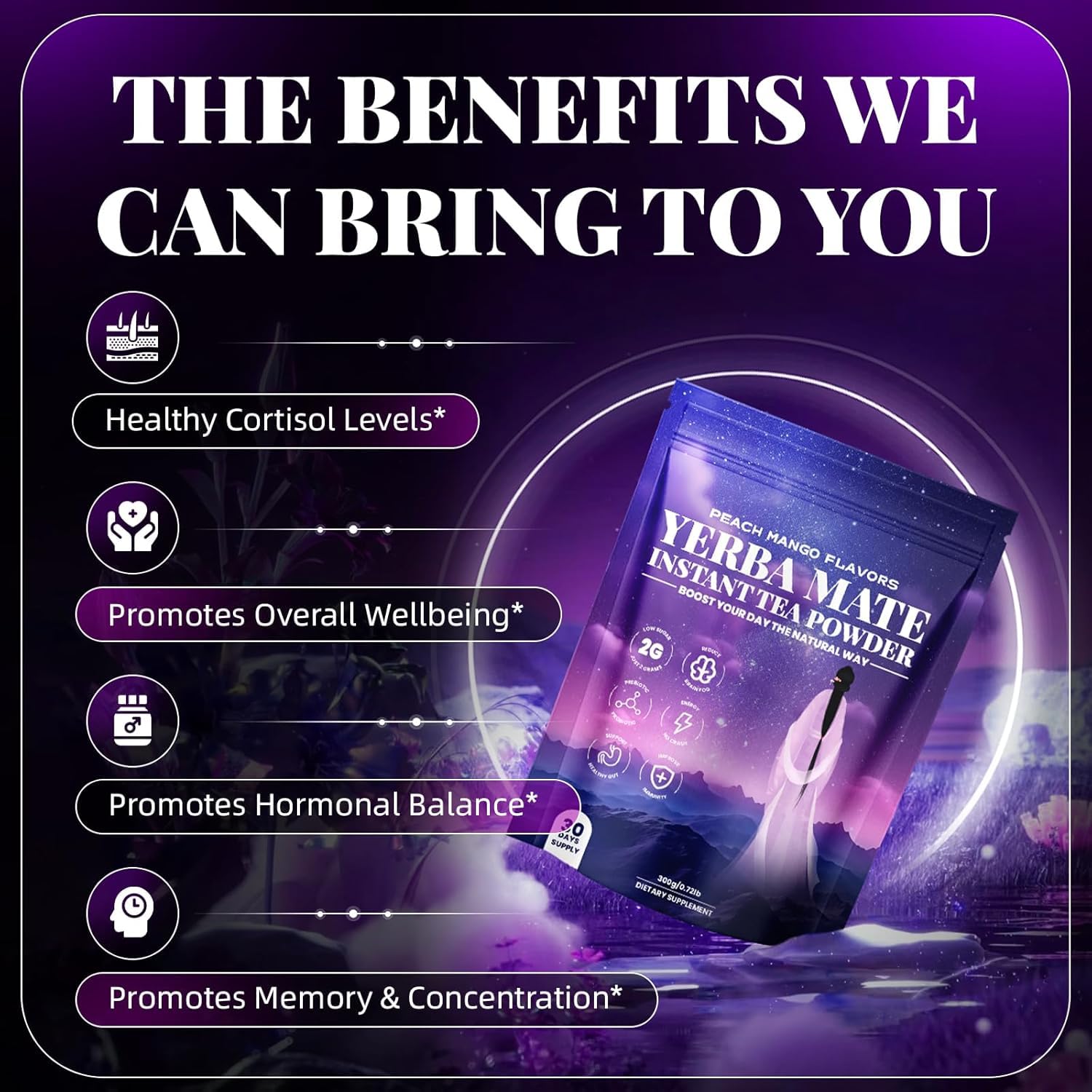 - 2**instant & convenient**no more brewing hassle! our yerba mate instant tea powder dissolves in seconds. perfect for home, work, gym, or travel—energy and refreshment, anytime, anywhere.