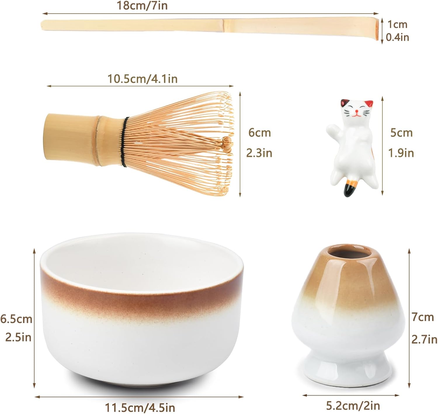 - [Beautiful Aesthetic] The design is elegant and minimalist, which enhances the whole matcha experience. It’s not just functional but looks lovely displayed on your kitchen counter. The scoop stand with the little cat is cute enough to leave out on the countertop