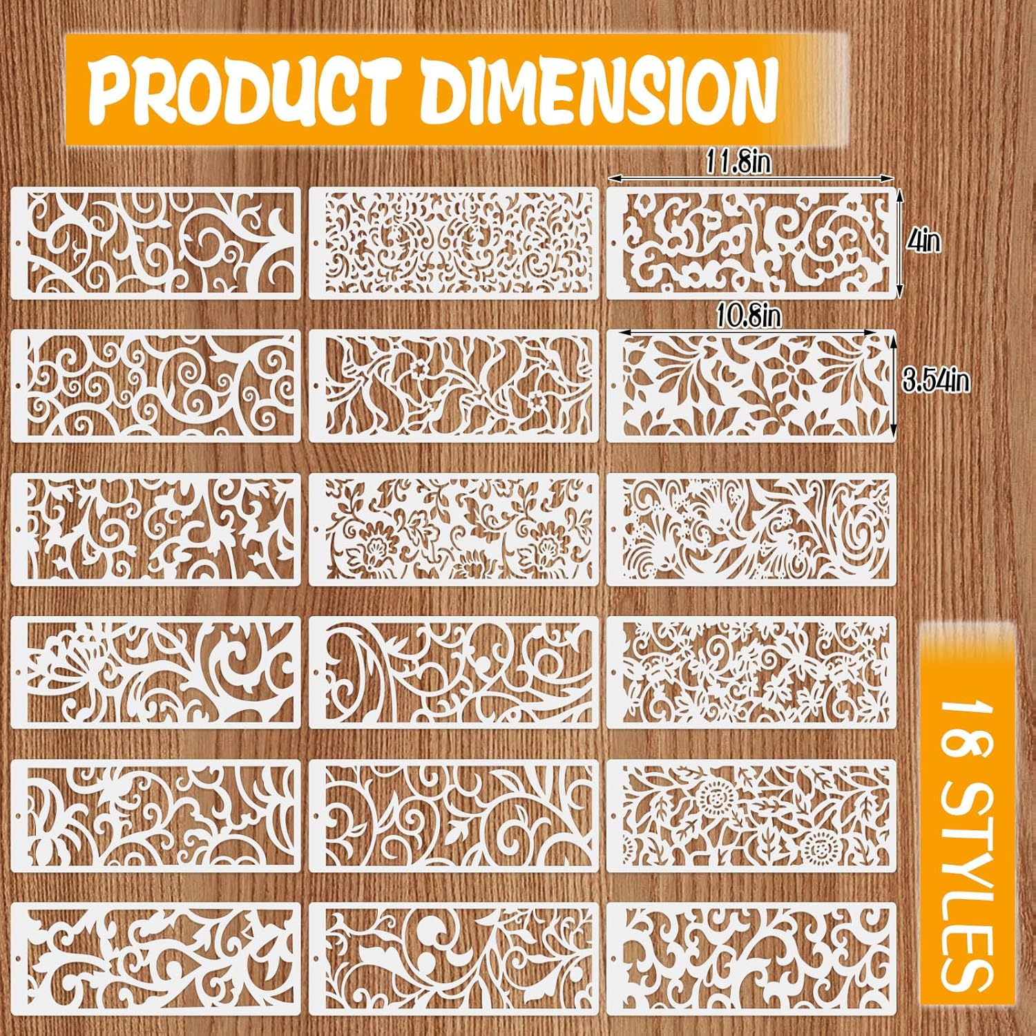 - What You Will Get: You will receive 18 flower leaf border stencils for painting with different floral patterns, each measuring 4" x 11.8", adding a touch of elegance to your artwork or home decor projectsconvenient to use, store, and carry.