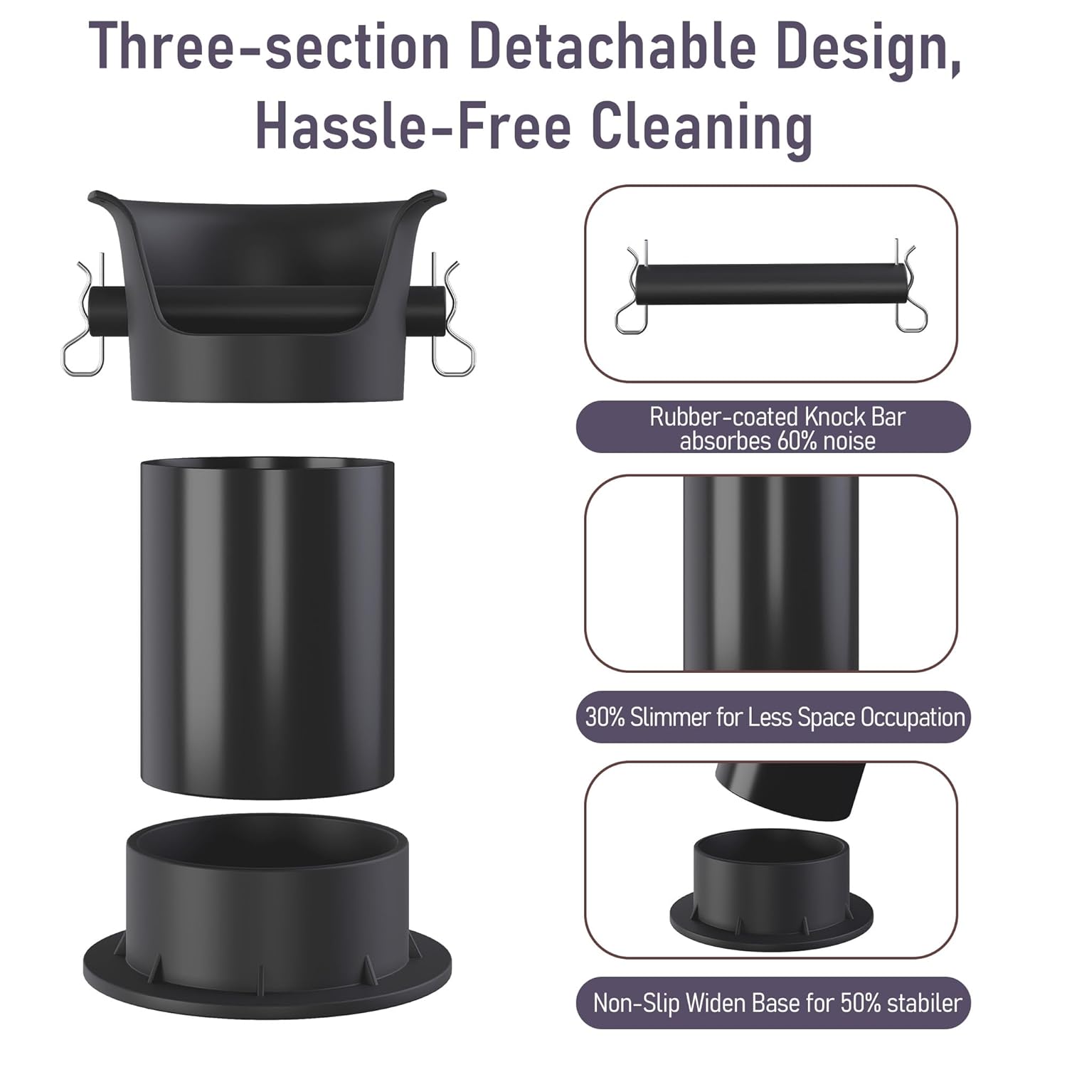 - Silent Espresso Puck Knock Box: The knock bar, enveloped in a thick layer of rubber coating, effectively buffers impact force. This design not only slashes noise levels by as much as 60% but also delivers a gentle yet firm strike to your coffee machine portafilter. Thanks to the non-slip and stable base, the box remains stationary and resists tipping during use. A simple knock suffices to dispatch coffee pucks into the inner collection bag, facilitating hassle - free disposal or recycling