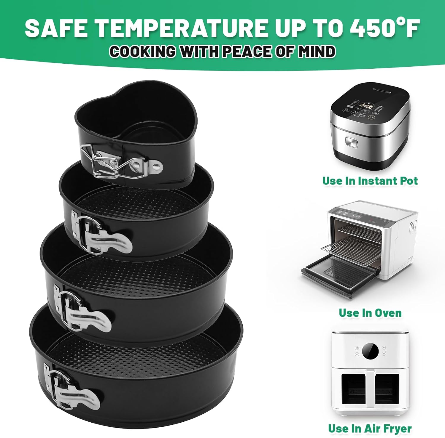 Springform Cake Pan Set,Non-Stick Springform Pans Set of 4 (4, 7, 9,10inches),Leak-Proof Round Cake Pans with Removable Bottom for Baking Cake Pie Pizza and Quiches (BlackX4)