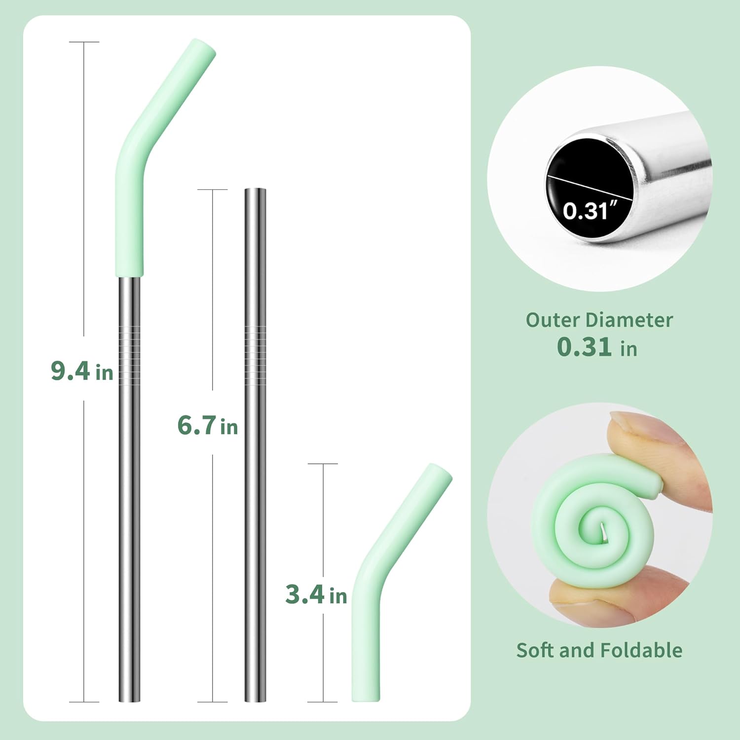 - Fits: Stainless steel straw 8mm (0.3") diameter and 6.7" long, silicone tips 3.4" long. Fits cups up to 6 inches in height. Fit for HydroFlask 12 oz mug, 16 oz All Around Tumbler, YETI Rambler 24 oz Mug. Please double-check cup height before ordering.