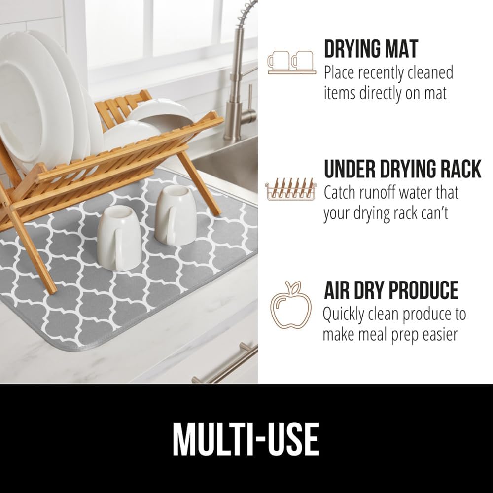 GORILLA GRIP Ultra Water Absorbent Microfiber Dish Drying Mat, Quick Dry Mesh, Slip Resistant Pad for Sink Dishes or Under Rack, Kitchen Counter Accessories, 16x18, Machine Wash, 2 Pack Quatrefoil