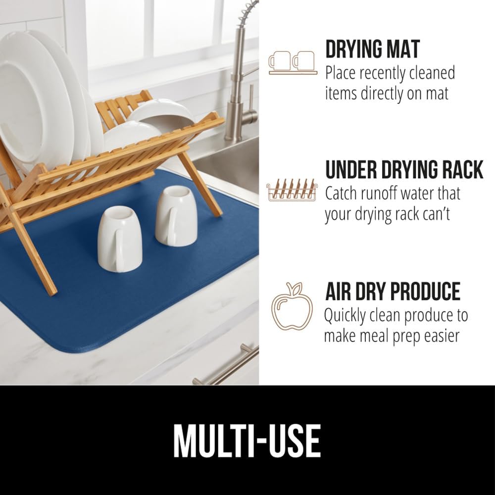 GORILLA GRIP Ultra Water Absorbent Microfiber Dish Drying Mat, Quick Dry Thick Mesh, Slip Resistant Pad for Sink Dishes or Under Rack, Kitchen Counter Accessories, 16x18, Machine Wash, 2 Pack Blue