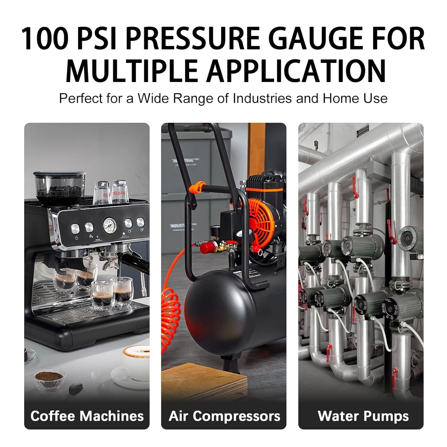 - Compact 1-Inch Pressure Gauge: Small 25mm dial, ideal for tight-space applications like coffee machines