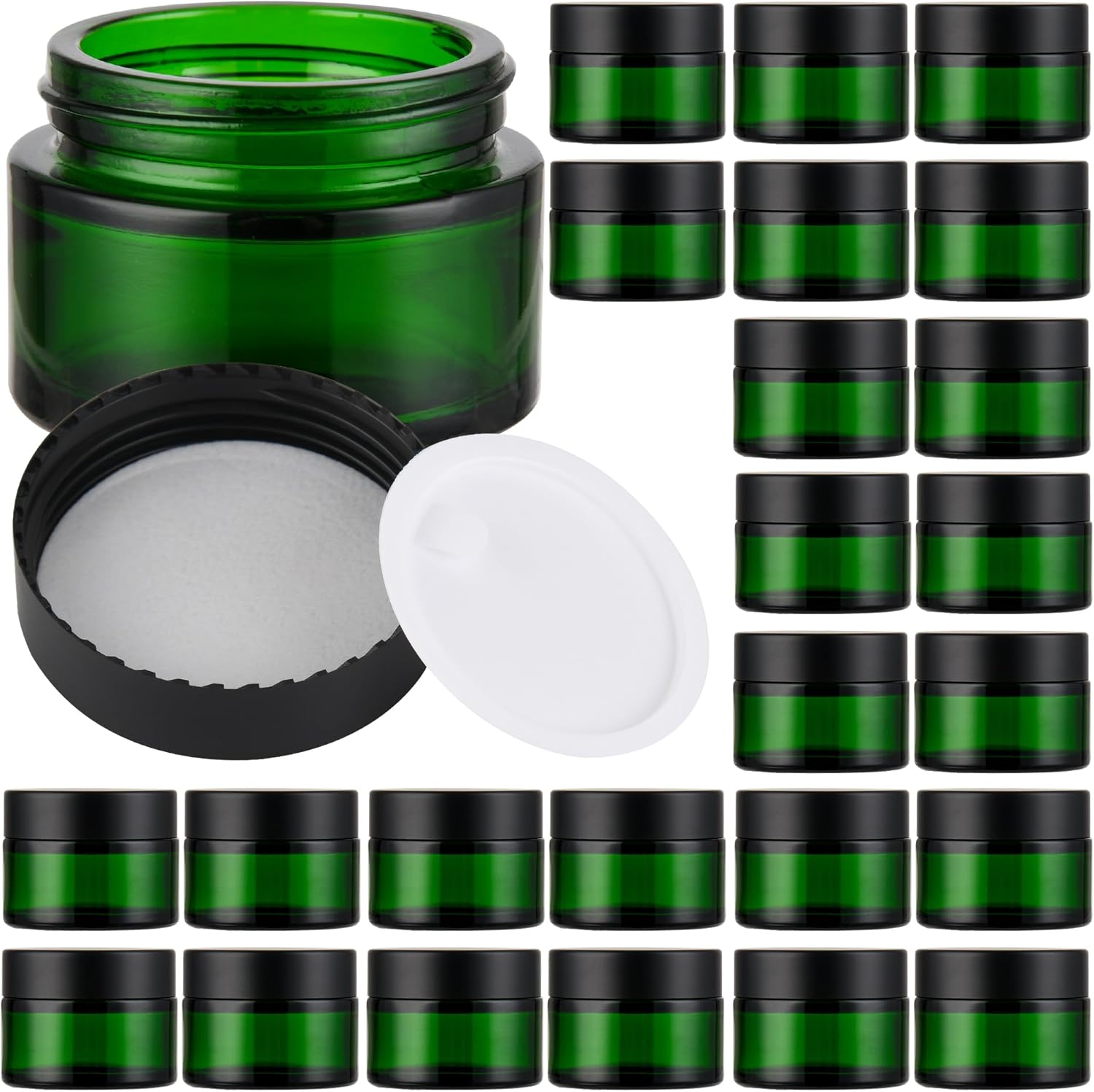 Glass Jars with Lids,Eco-Friendly Cosmetic Containers with Airtight Black Lids & Liners, Multi-Color Options for Cream, Lotion, Body Butter, DIY Skincare Travel Jars (Green, 1oz)