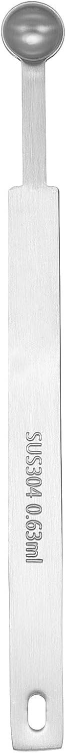 - Size - Each teaspoon is 1/8tsp | 0.63ml, and the total size is 180 x 15mm / 7.09 x 0.59 inch (L*W). The accurate measurement size is engraved on the handle of the teaspoon, which is easy to read, can effectively reduce measurement errors, and is durable.