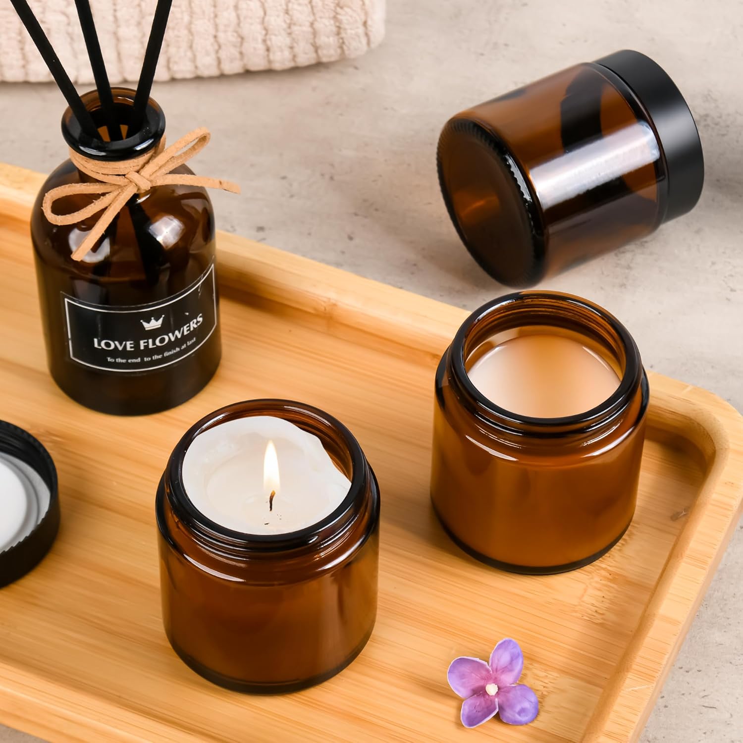 Glass Jars with Lids,Eco-Friendly Cosmetic Containers with Airtight Black Lids & Liners, Multi-Color Options for Cream, Lotion, Body Butter, DIY Skincare Travel Jars (Amber, 4oz)