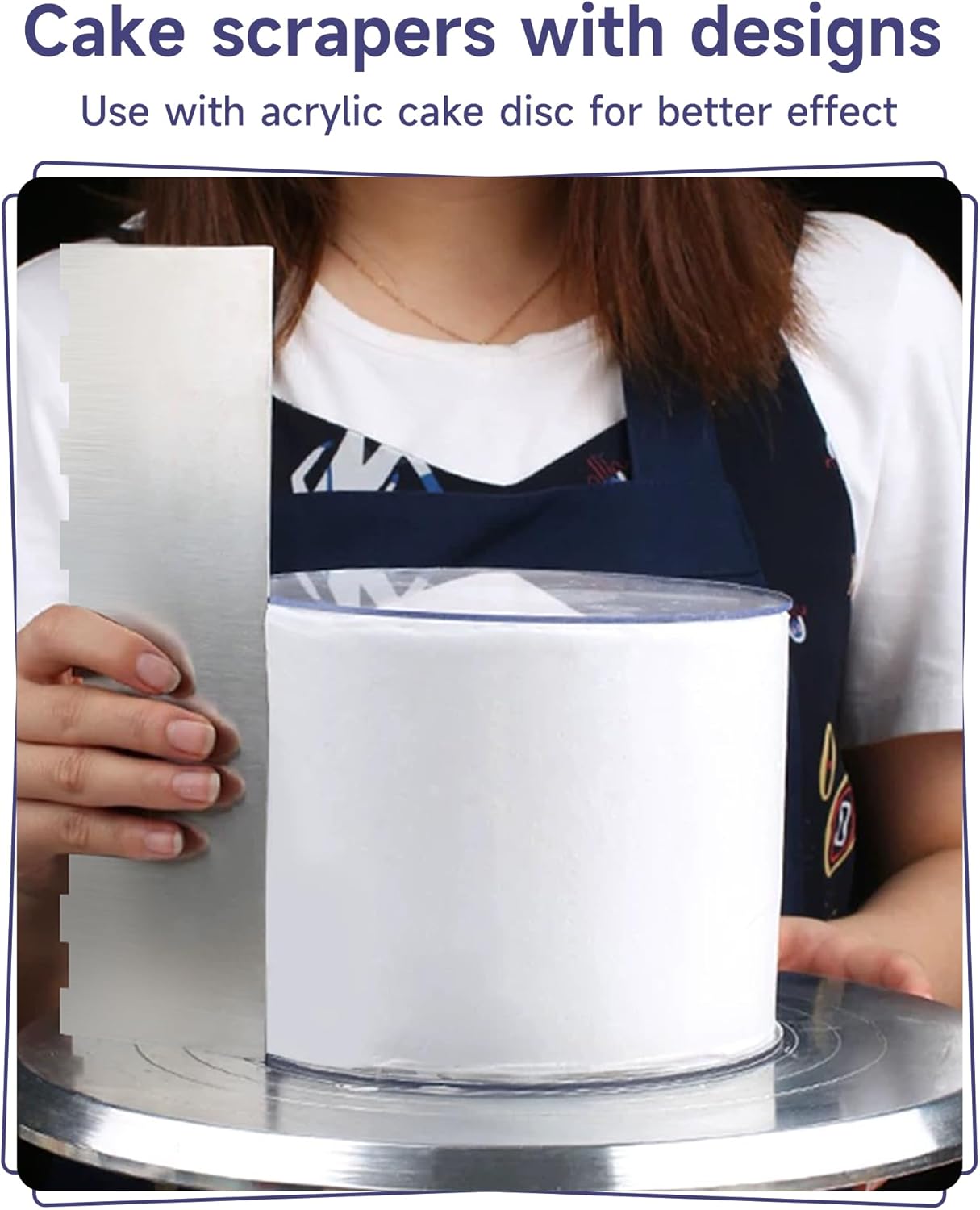 - Cake Scraper Smoother: Made of stainless steel metal, the cake comb surface is smooth, thick, durable and safe to use, easy to clean, reliable material can serve you for a long term.stripes on your cake, making it easier to scrape the cake.