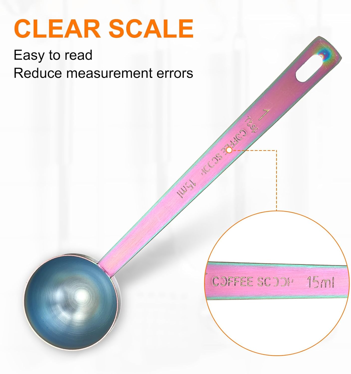 HARFINGTON 2pcs Coffee Scoop Spoon 1tbsp (3tsp, 15ml) 304 Stainless Steel Long Handle Teaspoon/Tablespoon Measuring Spoons Scoops for Tea Sugar Kitchen, Multicolor