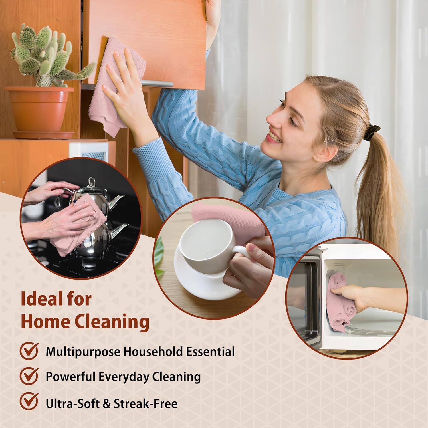 H4N Microfiber Cleaning Cloth Roll, 85 Pack Micro Fiber Wash Cloths for Car, Tear Away Towels, Ultra Absorbent Dish Rags, Non-Abrasive, Reusable and Washable Household Supplies, 11.81" x 11.81", Pink