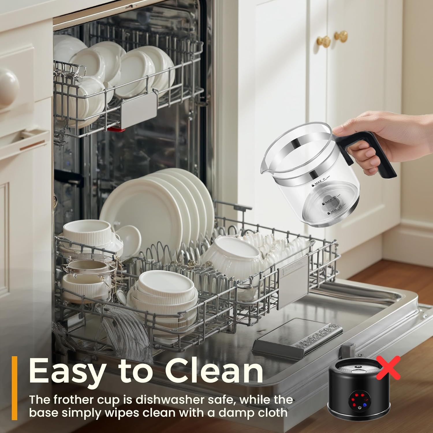 - 【Quick frothing】 Whips up creamy foam in just 2 minutes, saving you time on busy mornings. It automatically shuts off once done, so you don't have to worry about burning the milk.