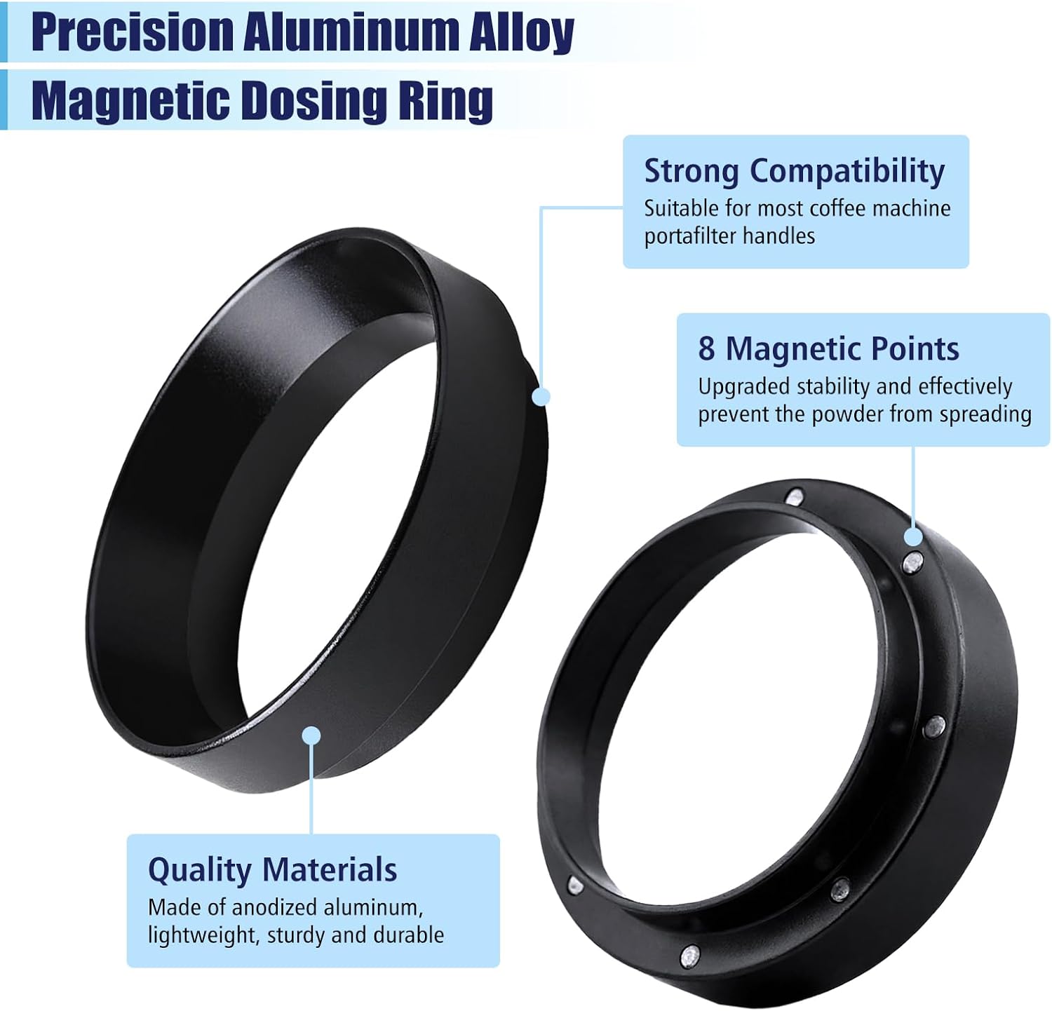 - Complete 2-in-1 Barista Kit: This set includes a 53mm aluminum dosing funnel with 8 magnetic points (prevents coffee spills) + a 1.7mm thick 316 stainless steel puck screen (ensures even extraction).