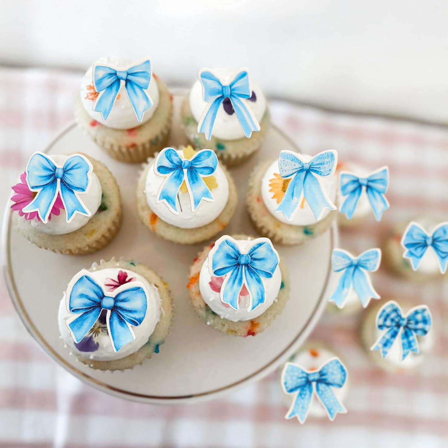 - -Tips: These edible Bow cupcake toppers are mainly for decoration, tasteless and harmless to eat, we suggest not to eat too much. please contact us in case of any problems, we will do all we can to make you satisfied.