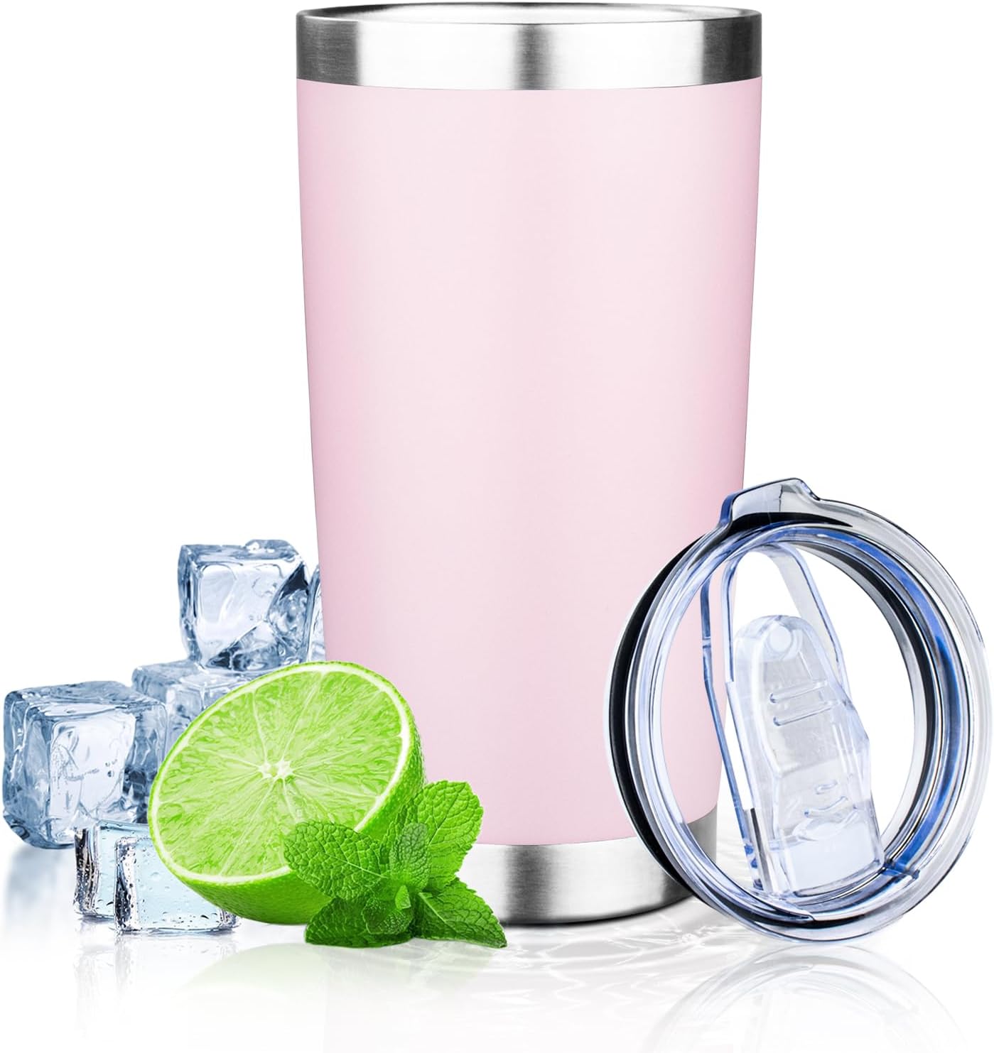 FristChoice 20oz Tumbler with Lid Double Wall Vacuum Insulated Travel Coffee Mug Stainless Steel Thermal Cup Powder Coated Sturdy Coffee Tumbler Bulk for Hot and Cold Beverage (Pink,1)
