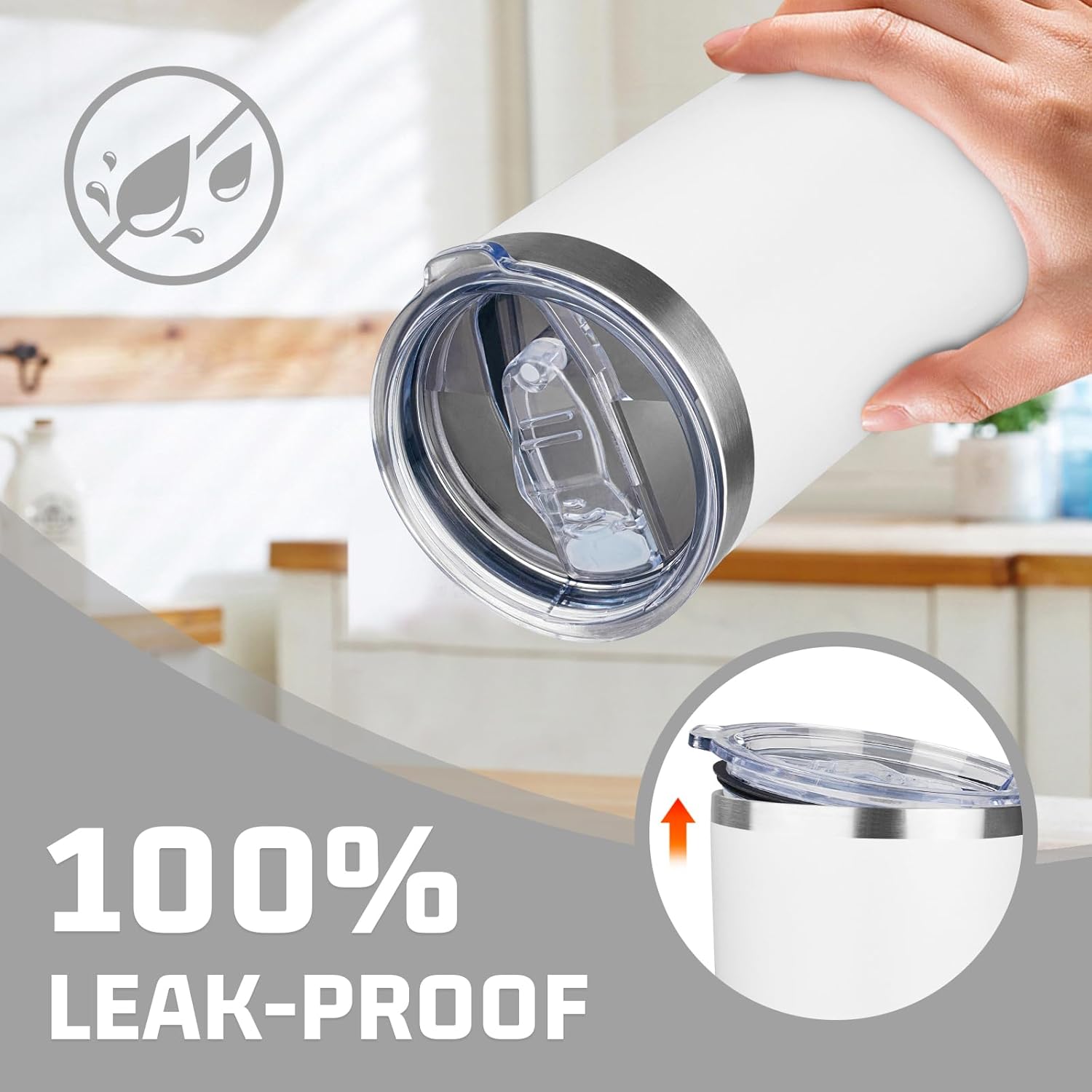 - ✅ 𝐁𝐏𝐀-𝐅𝐑𝐄𝐄 𝐚𝐧𝐝 𝐋𝐞𝐚𝐤-𝐩𝐫𝐨𝐨𝐟 𝐋𝐢𝐝: The 20 oz insulated coffee mug is equipped with a sliding lid which is BPA-free and healthy and the seal ring of the lid fits snugly into the mouth of the cup. When the sliding lid is closed, you don't have to worry about spilling your drink, even if the coffee tumbler is accidentally tilted.Our 20oz tumbler with lid for your daily or travel drinking needs, always hydrated.